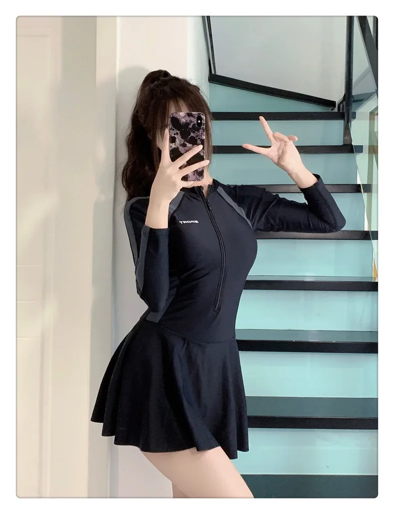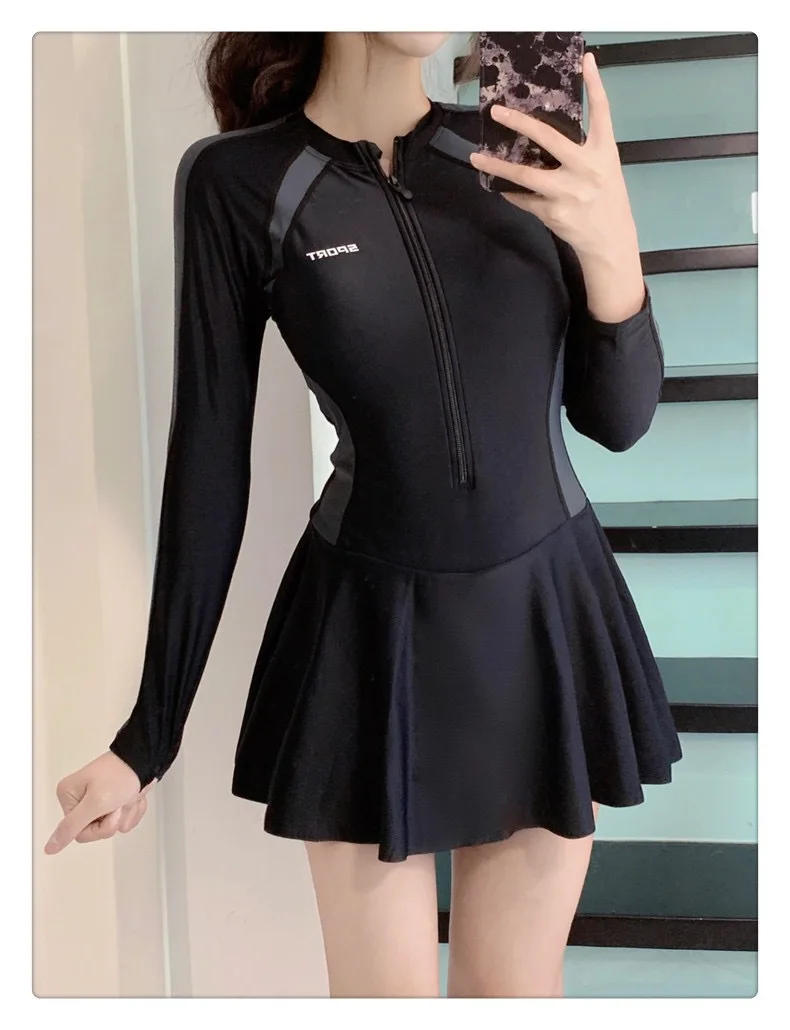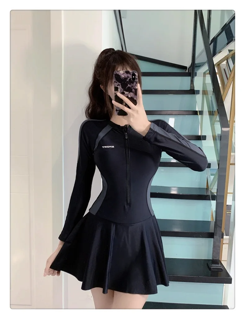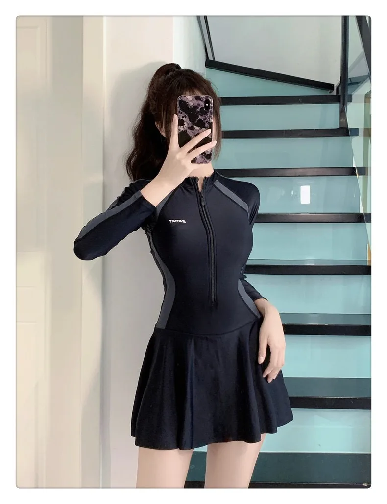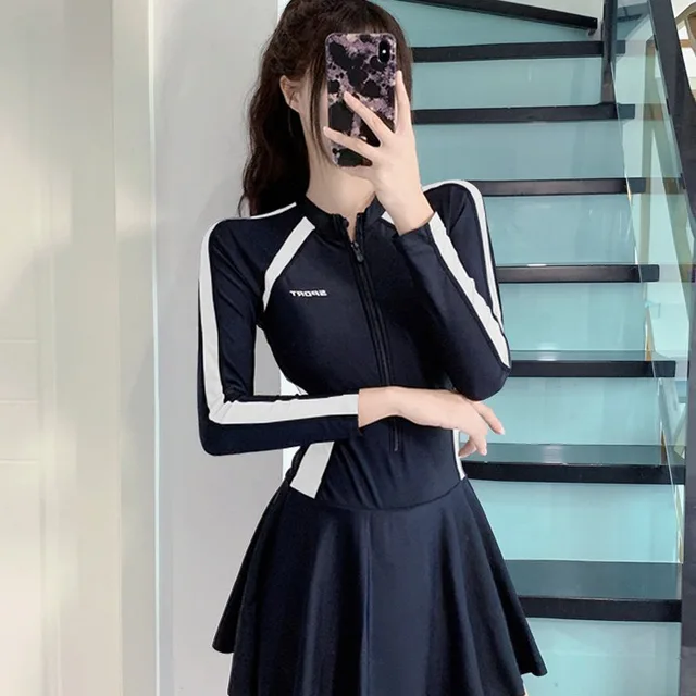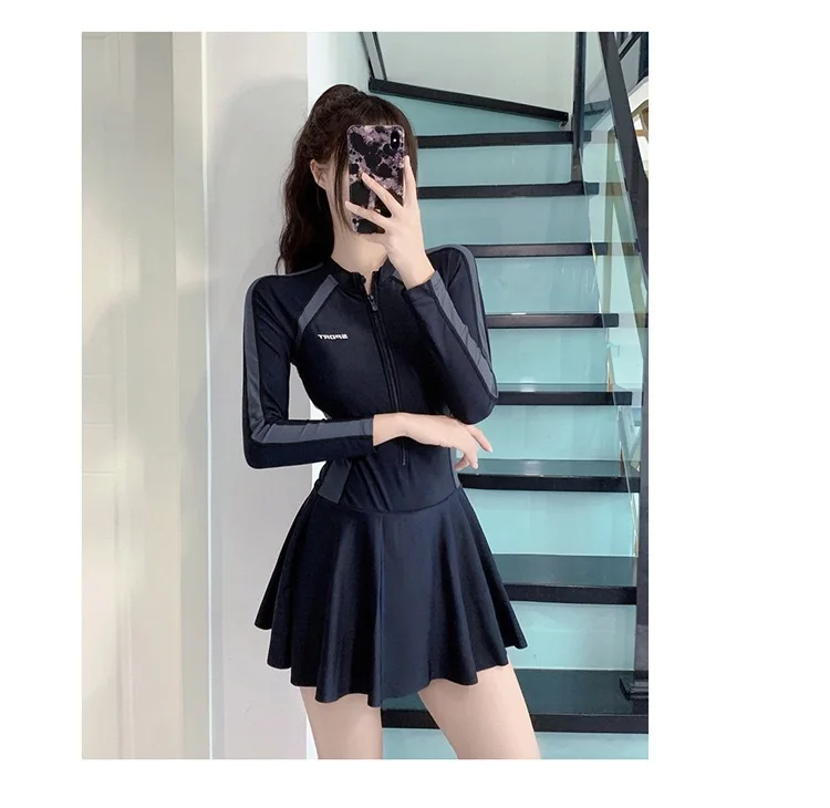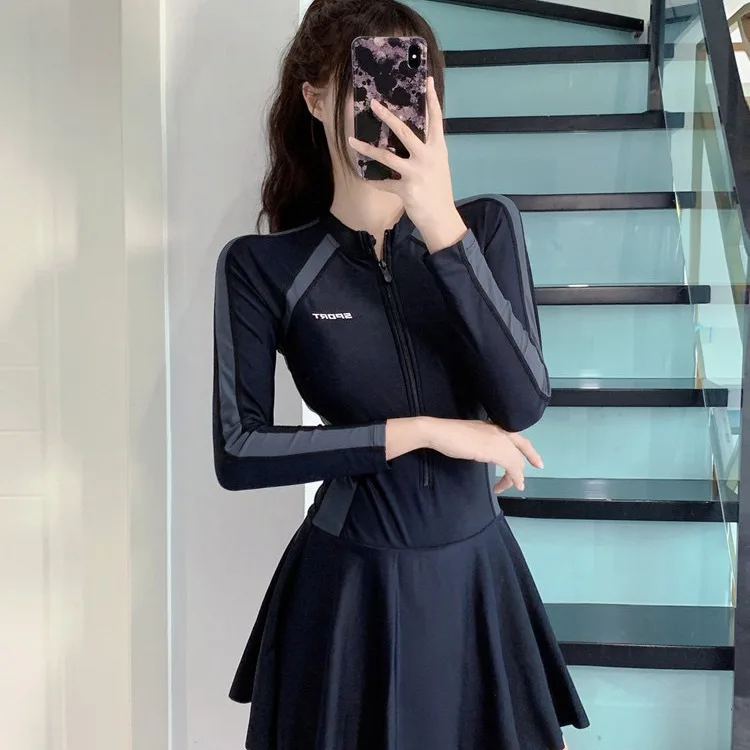 Conservative One-Piece Swimwear Dress Cover-Up Slimming for Hot Springs Swimming Pools Specialized Student Cross-Border