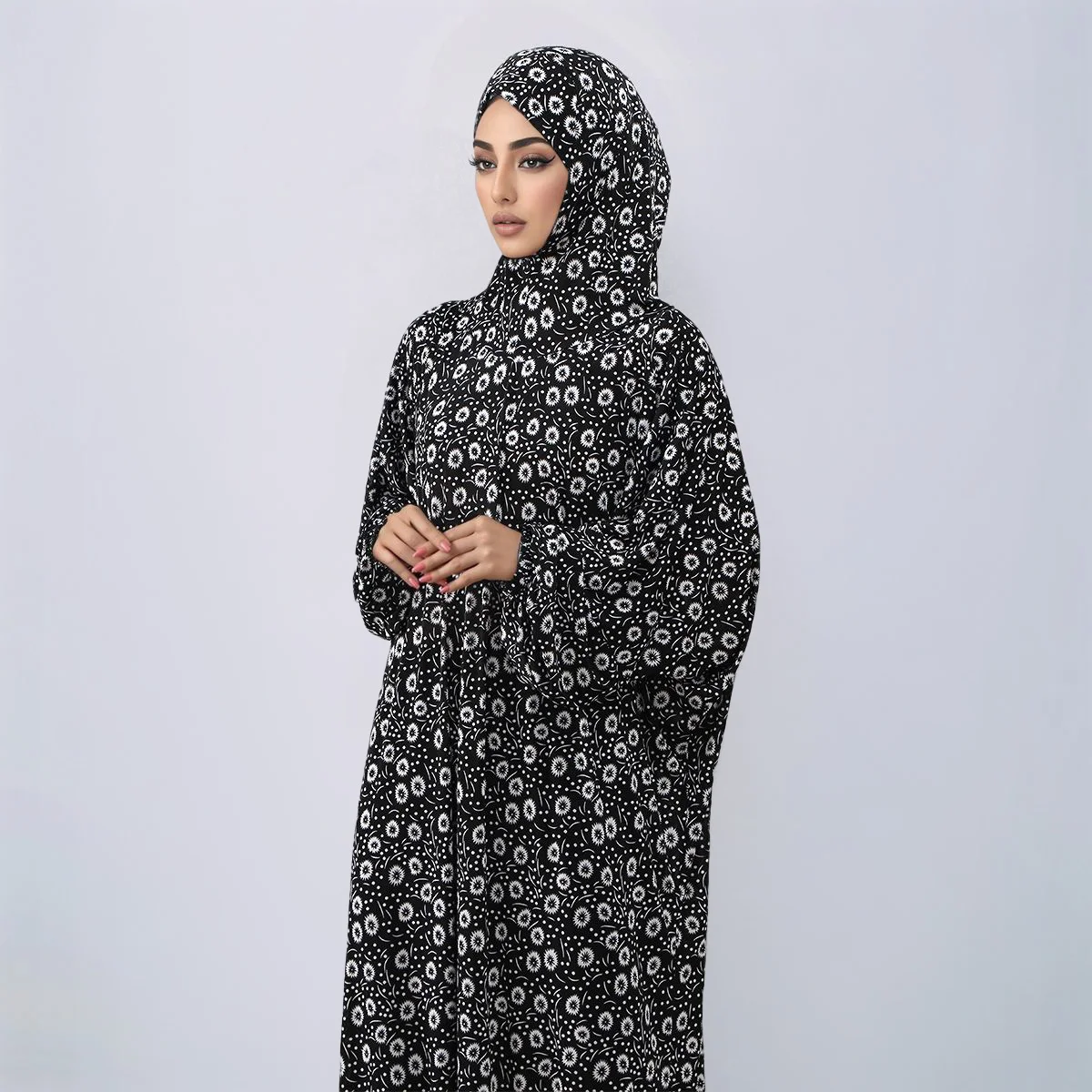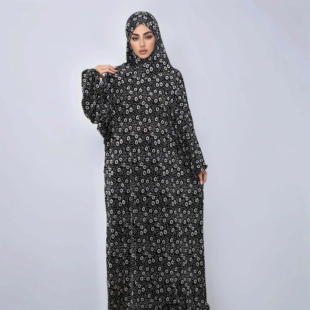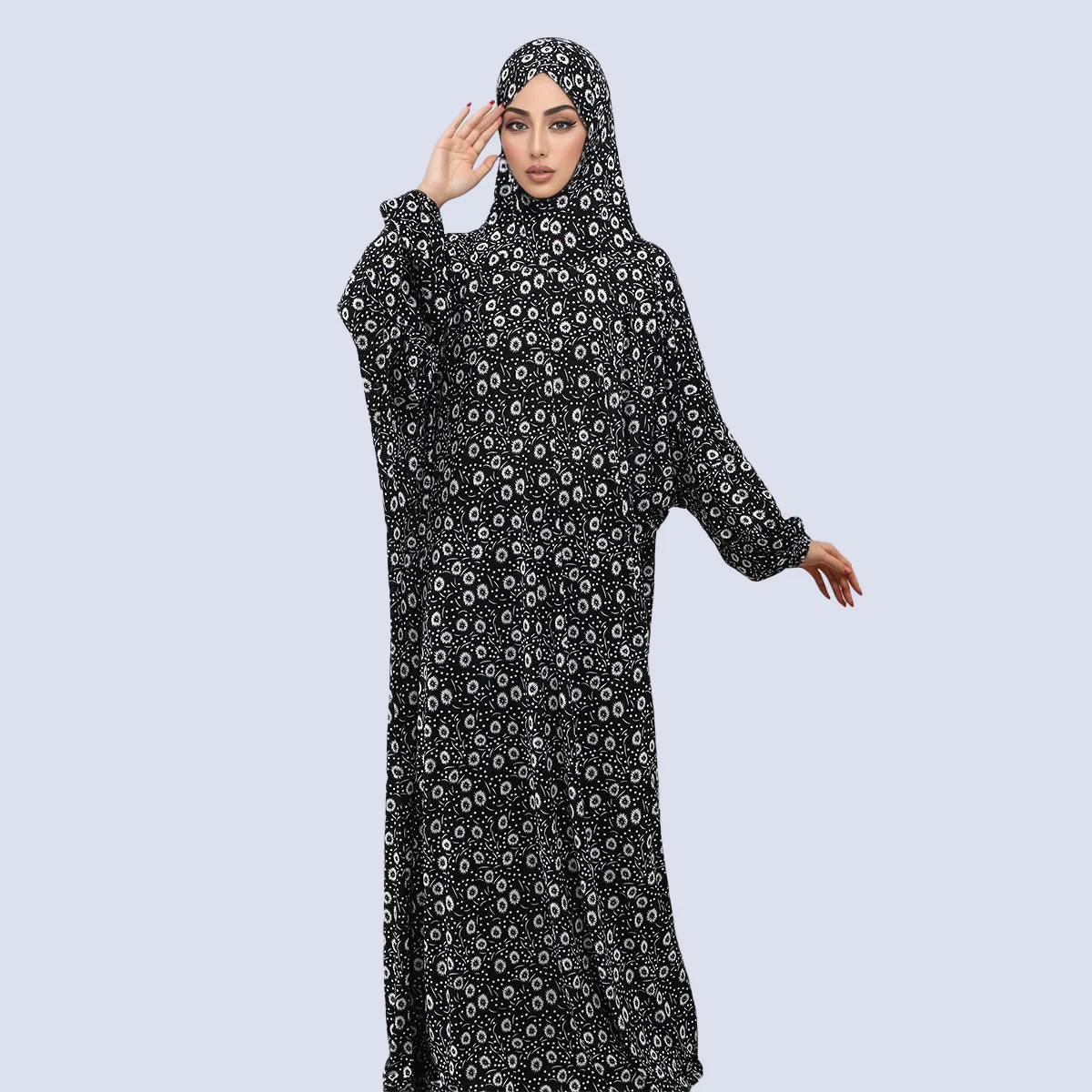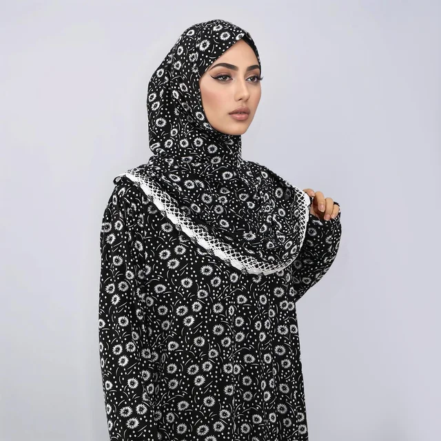 New Ramadan Abayas Floral Printed Dress Clothing for Women One-Piece Prayer Robe Dubai Femme Stretch Muslim Hijab Loose Abaya