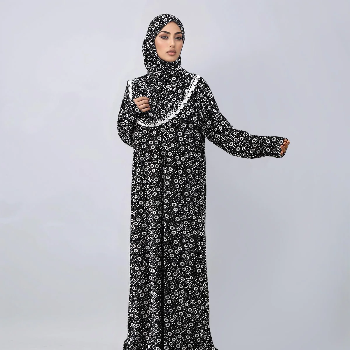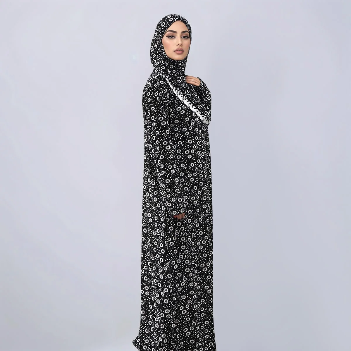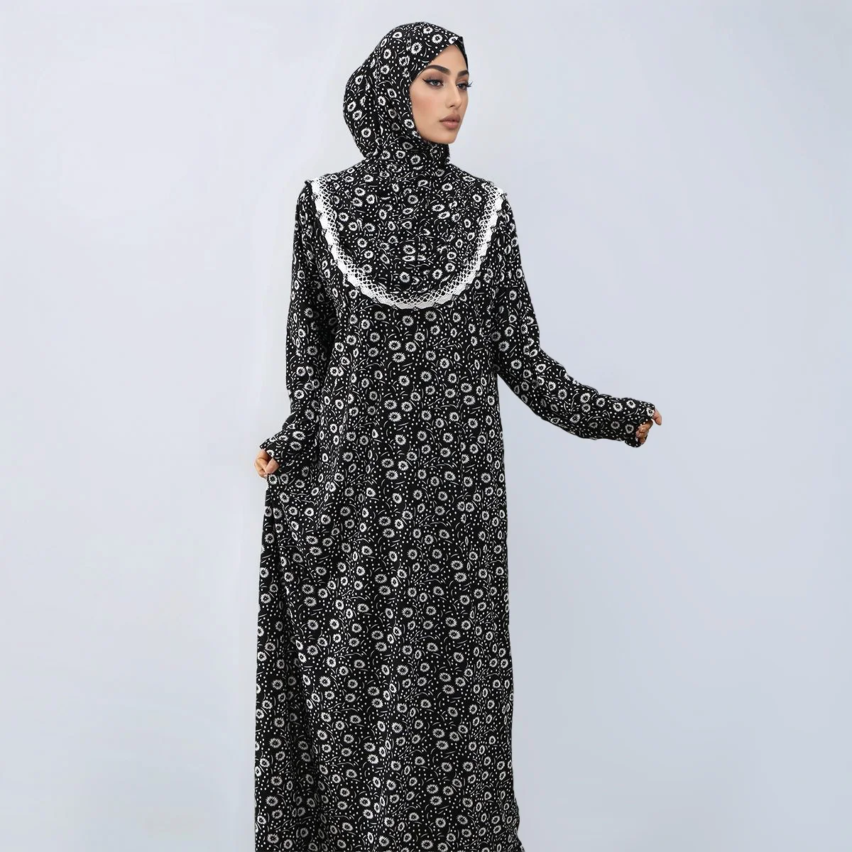 New Ramadan Abayas Floral Printed Dress Clothing for Women One-Piece Prayer Robe Dubai Femme Stretch Muslim Hijab Loose Abaya