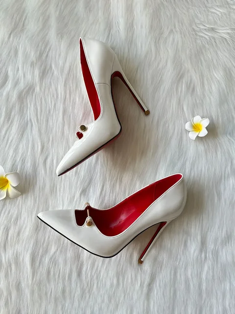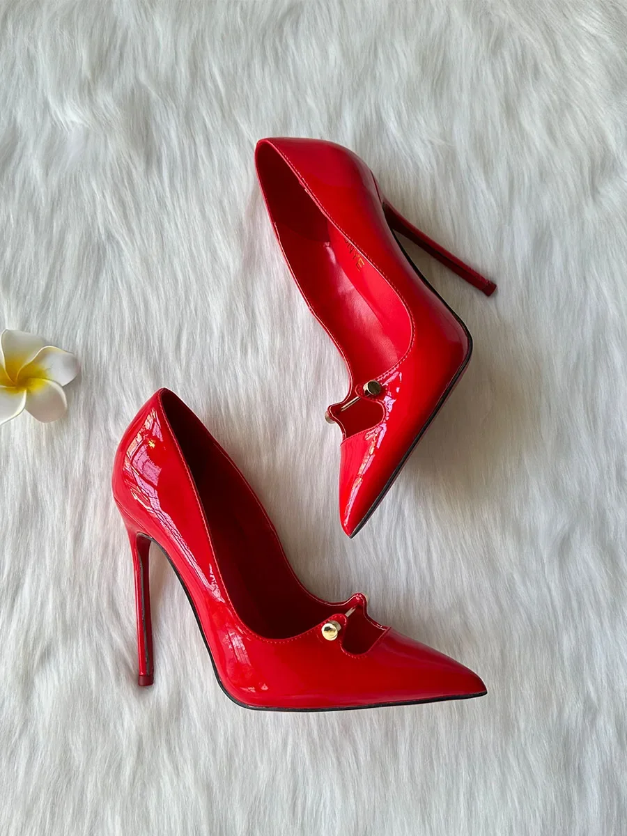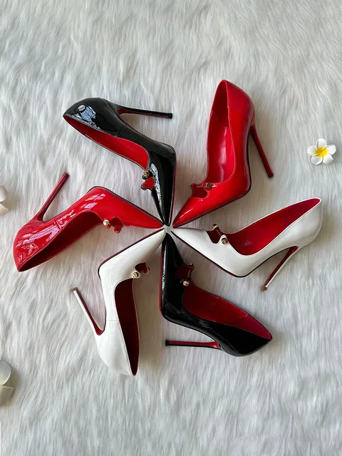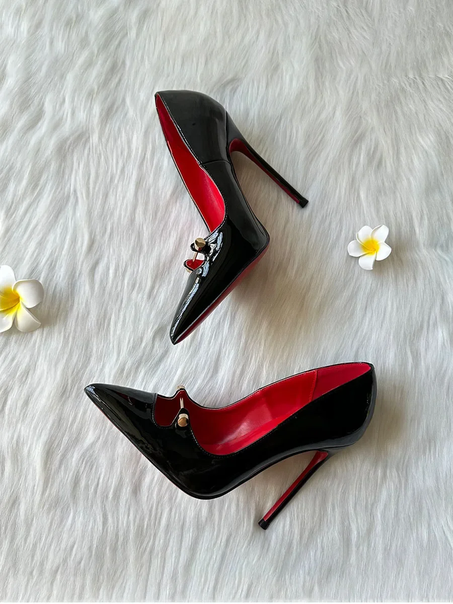 Black Patent Leather Women Ankle Strap Stiletto Pumps Pointed Toe Sexy High Heel Shoes 8cm 10cm 12cm Customize 33-46