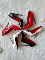 New red black white patent leather open toe single shoe with hollowed out nightclub sexy custom size