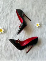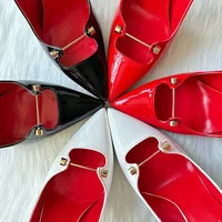 2024China Fashion Hot Selling Women's High Heel Lacquer Leather Single Shoes Metal Decoration Thick Heel Soft Sole Brand Sandals