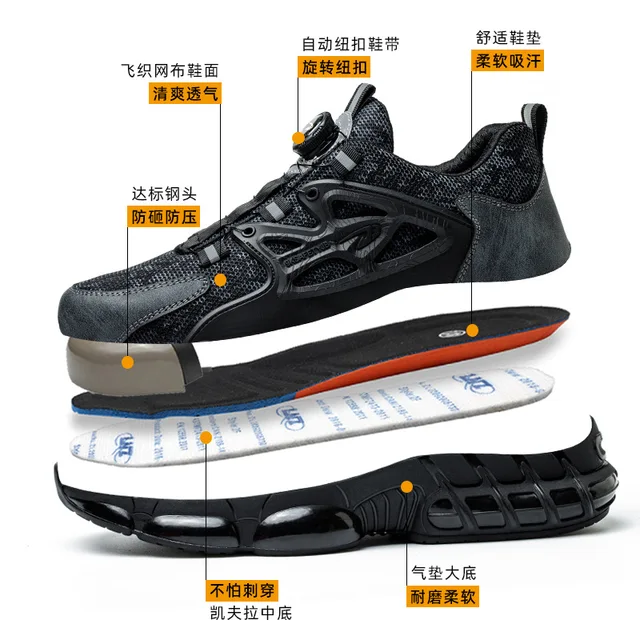 New Safety Boots Men Work Sneakers Anti-smash Indestructible Shoes Steel Toe Protective Boots Anti-puncture