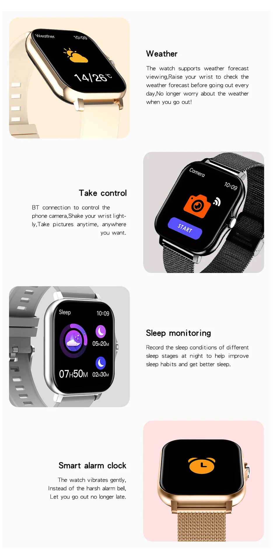 Bluetooth connection to control the phone camera, Shake your wrist lightly, Take pictures anytime, anywhere you want.