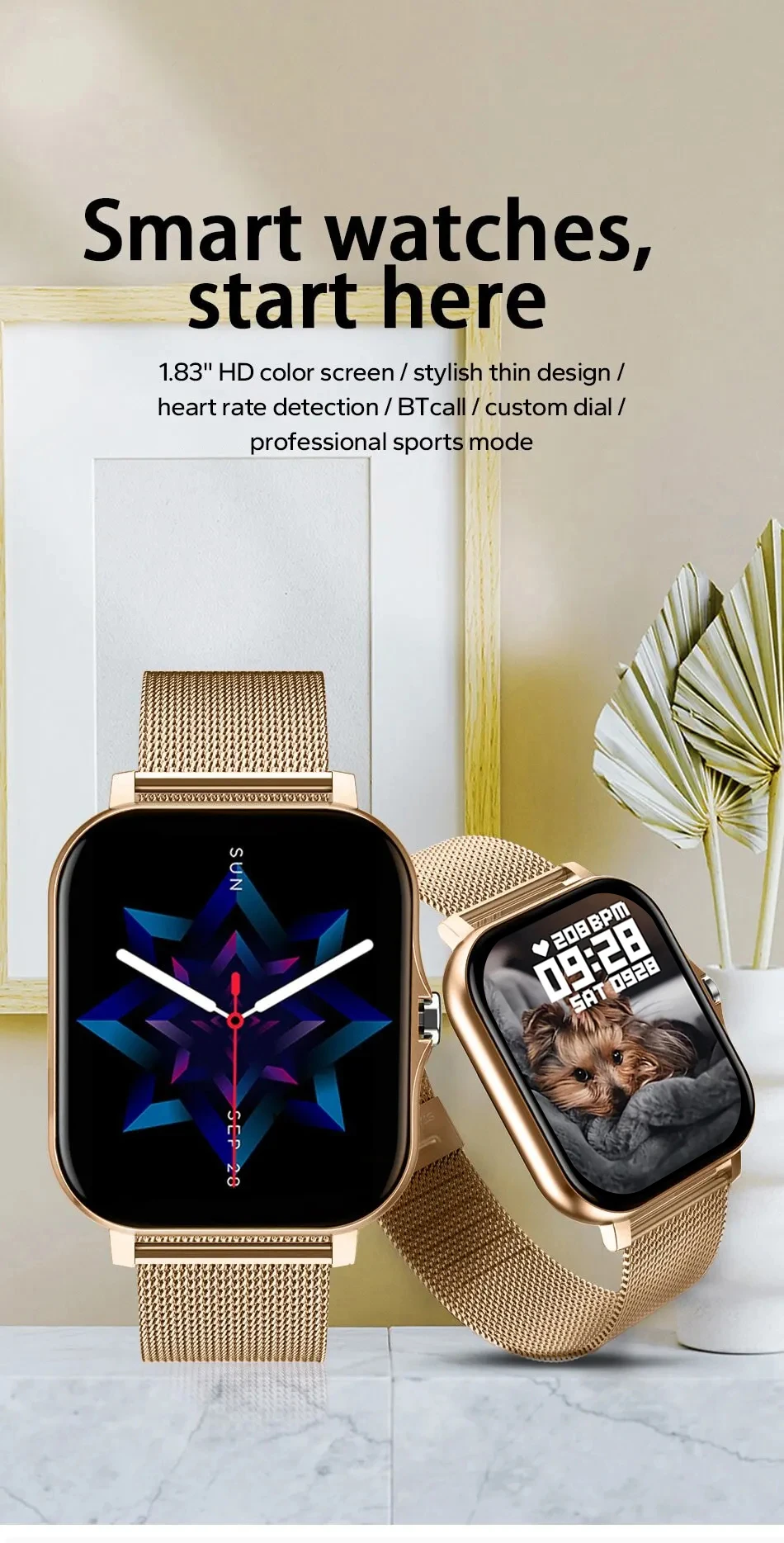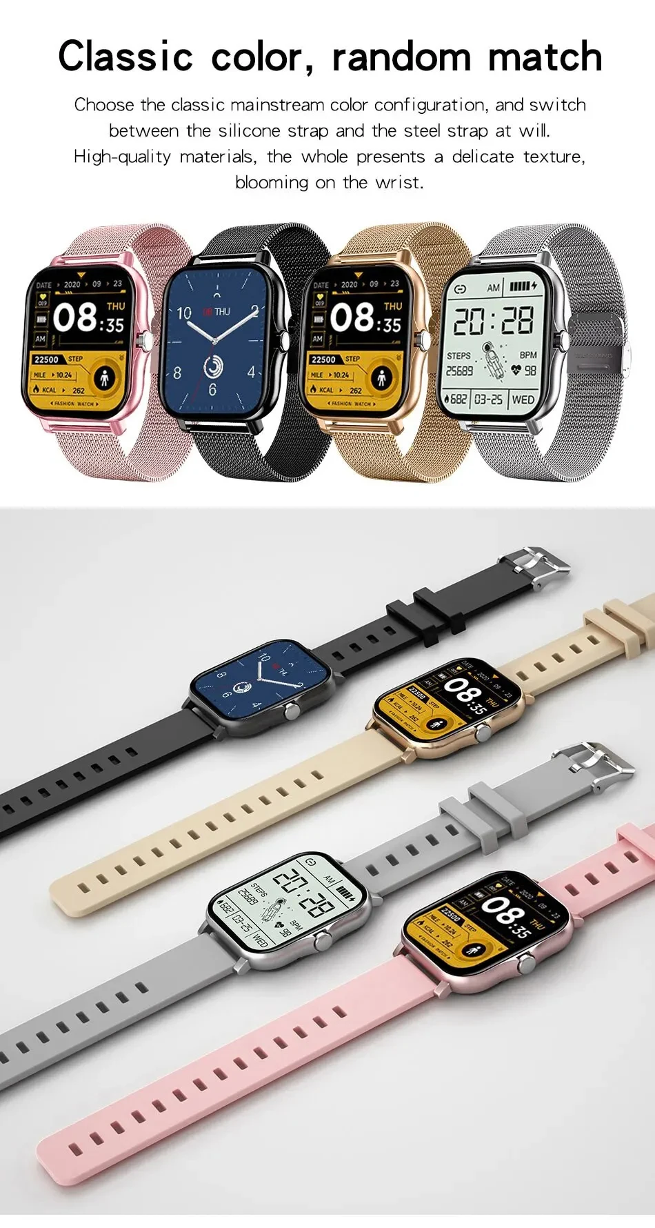 Through the mobile APP, you can upload your favorite wallpapers to your watch with one click, create your own exclusive dial, and show a different personality.