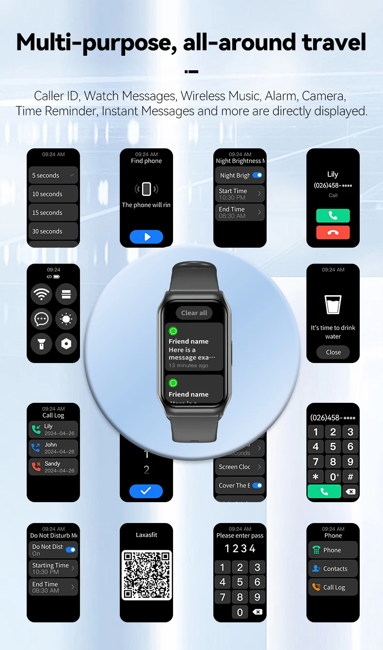 📞 Call & Message Alerts – Syncs with phone for call logs, SMS, and app notifications