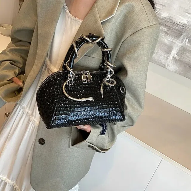 New Stone Pattern Women's Bag Handbags Large Capacity Shoulder Bag With Snake Hardware Top-handle Shell Bag