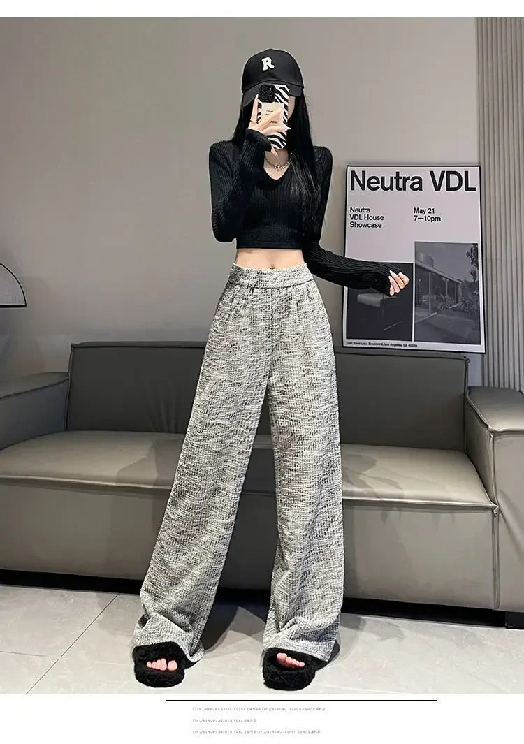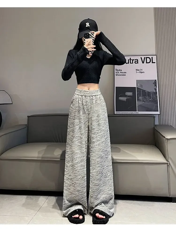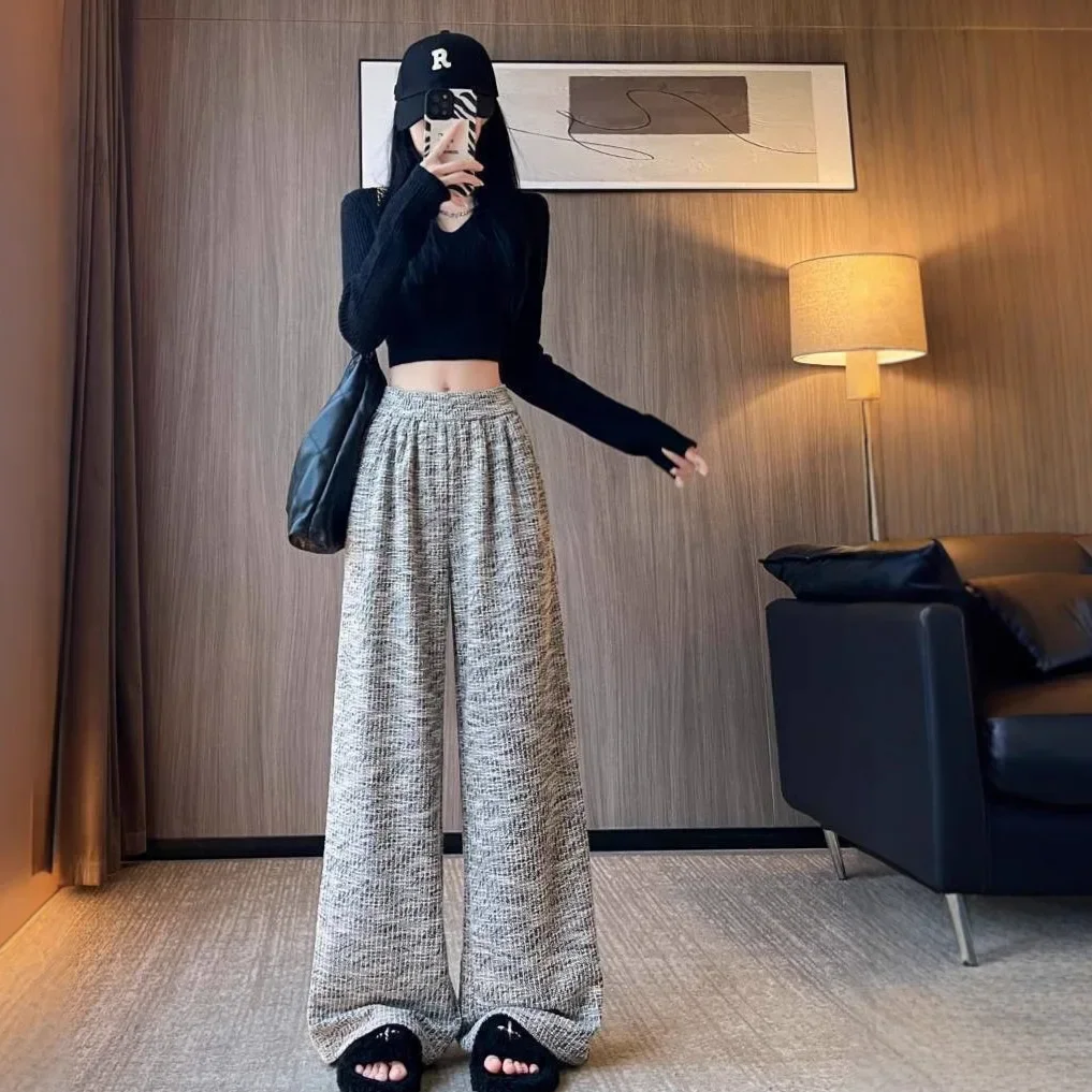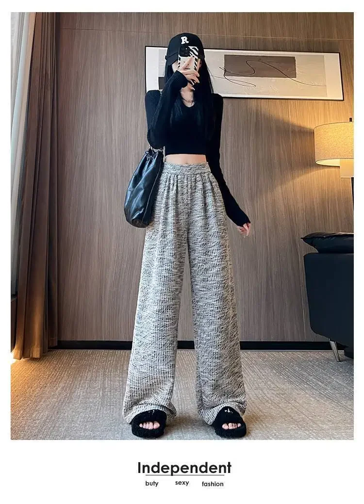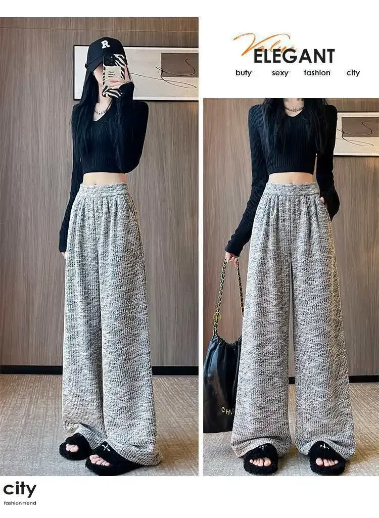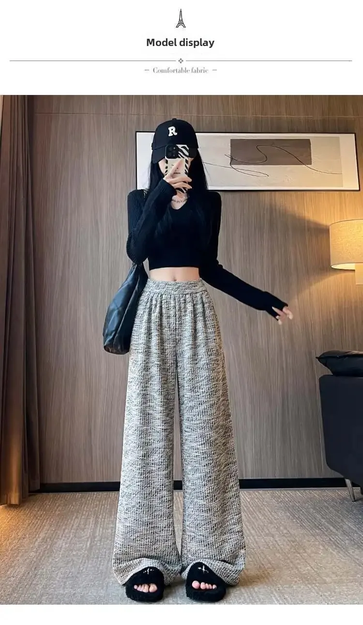 • Chanel-Inspired Design : These pants emulate the iconic Chanel style, featuring tweed fabric and wide-leg cut for a sophisticated yet casual look.