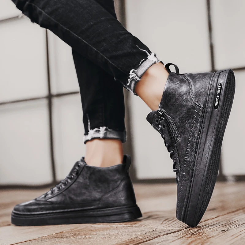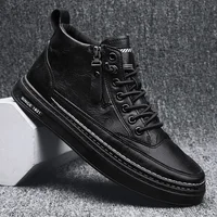 Trendy Men Snow Boots Keep Warm Cotton Boots 2024 New Leather Water Proof High Top Mens Shoes Comfort Outdoor Men's Casual Shoes