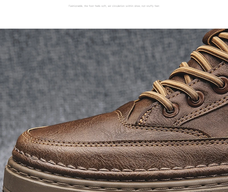 Men Snow Boots Winter Anti Slip Plush Indoor Warm Cold Proof Snow Boots High Top Platform Lace Up Outdoor Sport Work Boots