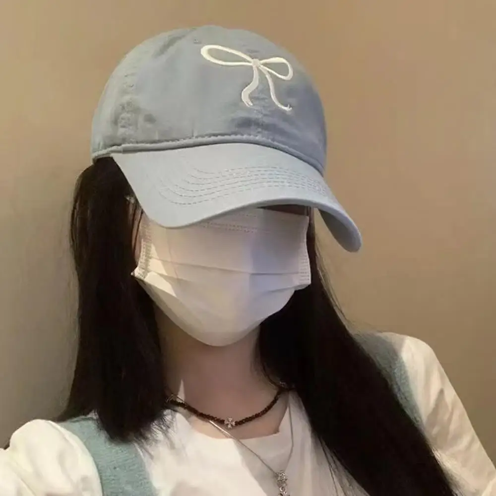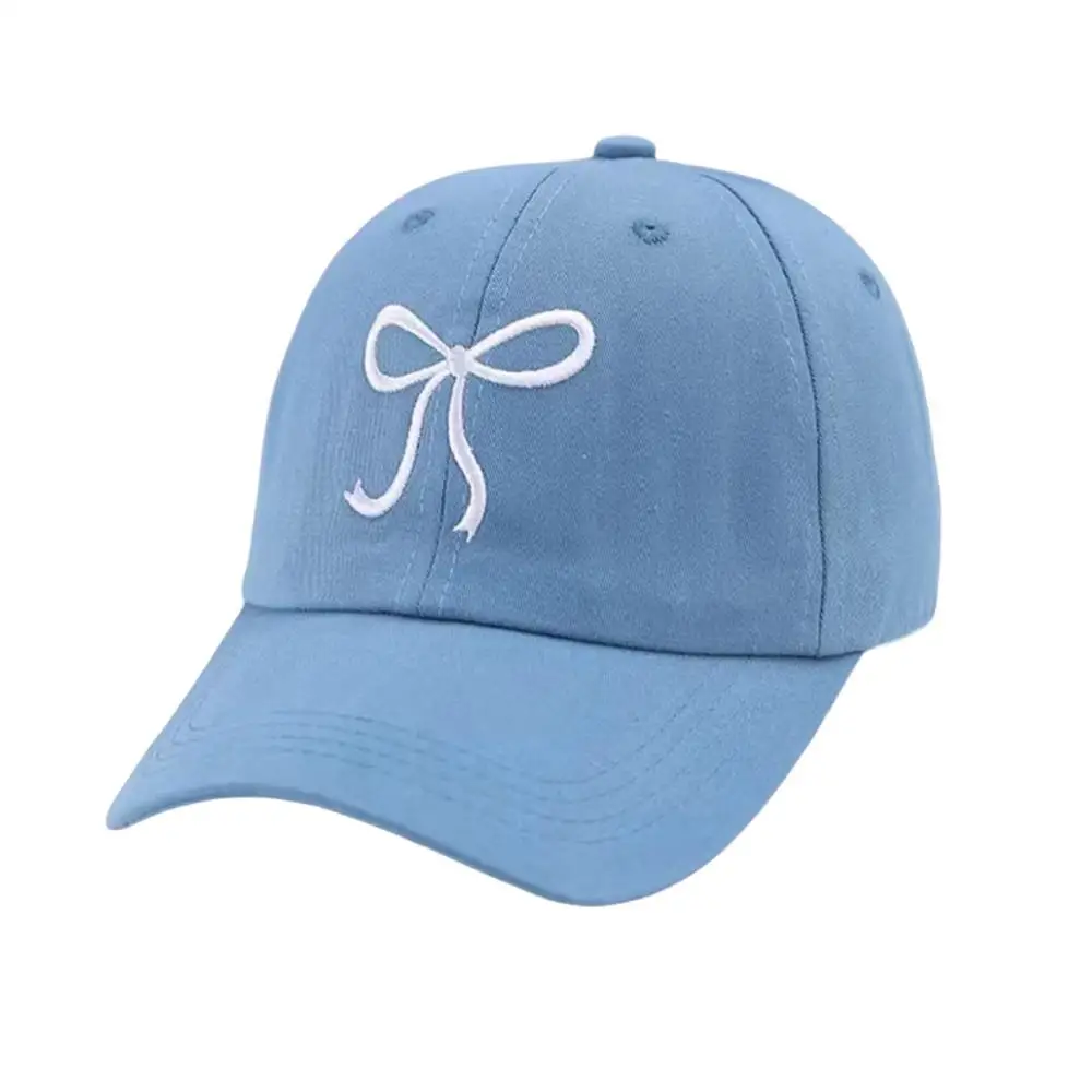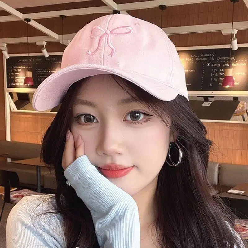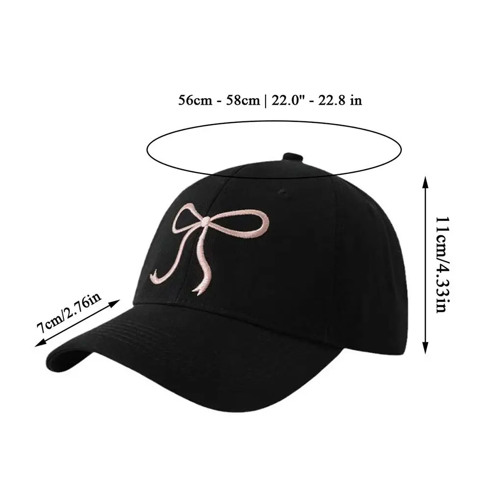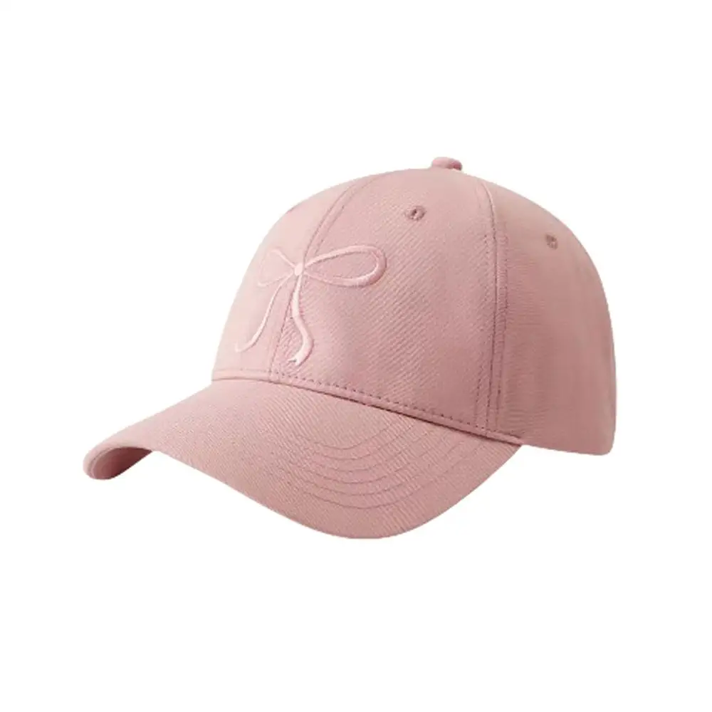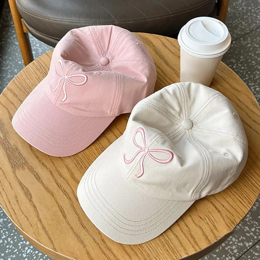 New Summer Cotton Korean Bow Baseball Cap Pink Embroidery Butterfly Girl Solid Color Visor Hat For Women Adjustable Sunshade