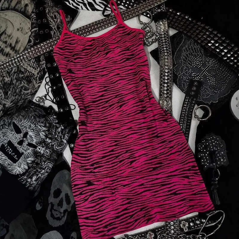 New Summer Euramerican Vintage Punk Subcultural Print Sling Dress Y2k Aesthetic Sexy Slim Fit Harajuku Short Dress Basic Clothes
