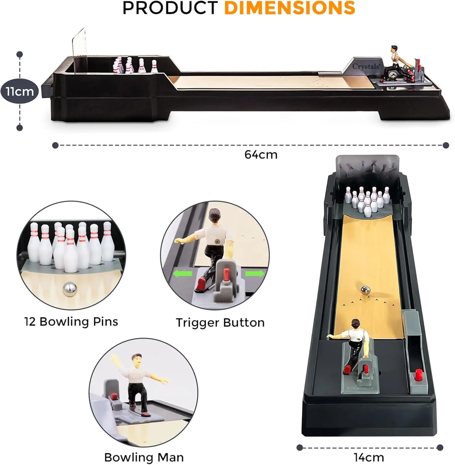 Complete Set: Includes 12 pins, 2 bowling balls, and a bowling alley for an authentic bowling experience.