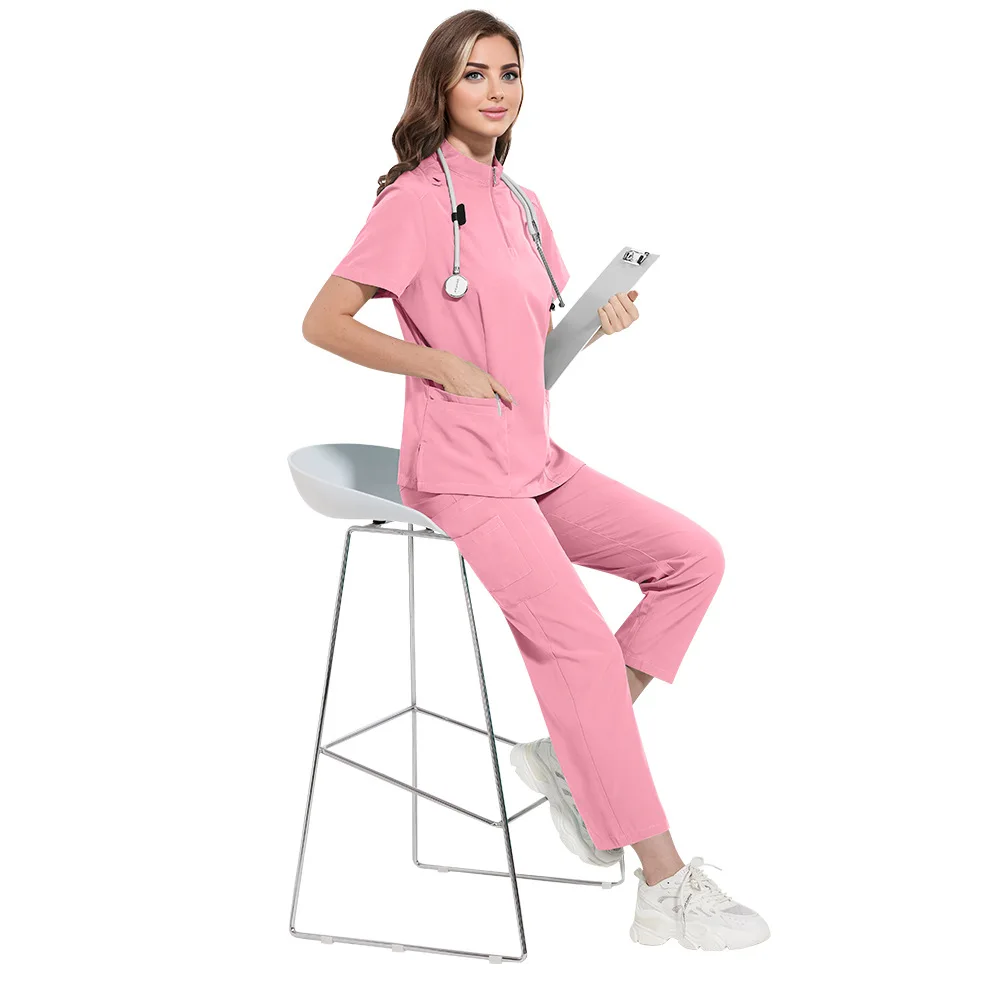 Wholesale Casual Short Sleeve V-neck Straight Sets Pharmacy Work Clothes Medical Nurse Uniform Scrubs Women Set Nursing Uniforms