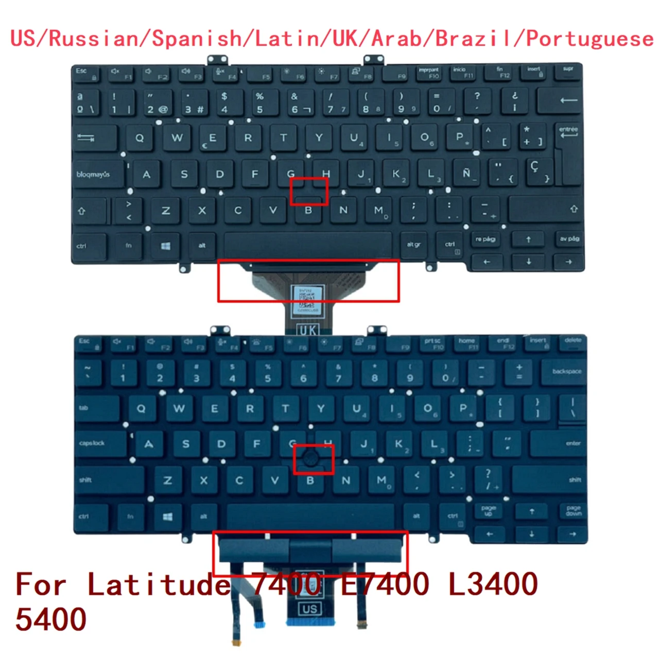 New US Russian Spanish Latin UK Arab Brazil Portuguese Laptop Backlit Keyboard For Dell Latitude 7400 E7400 L3400 5400