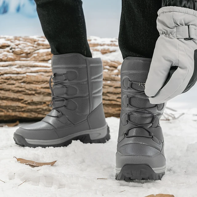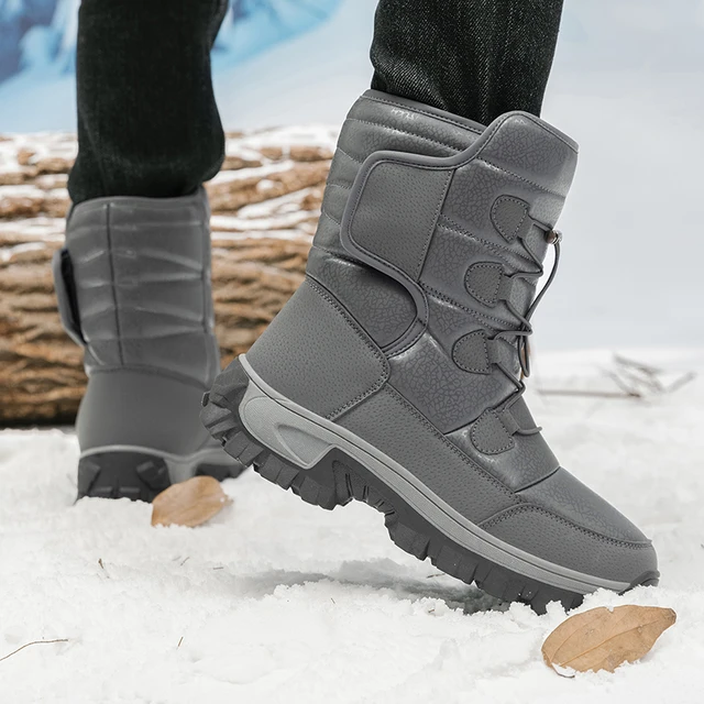 Winter men's leather waterproof high top boots fashionable and versatile motorcycle boots warm boots with laces anti slip soles