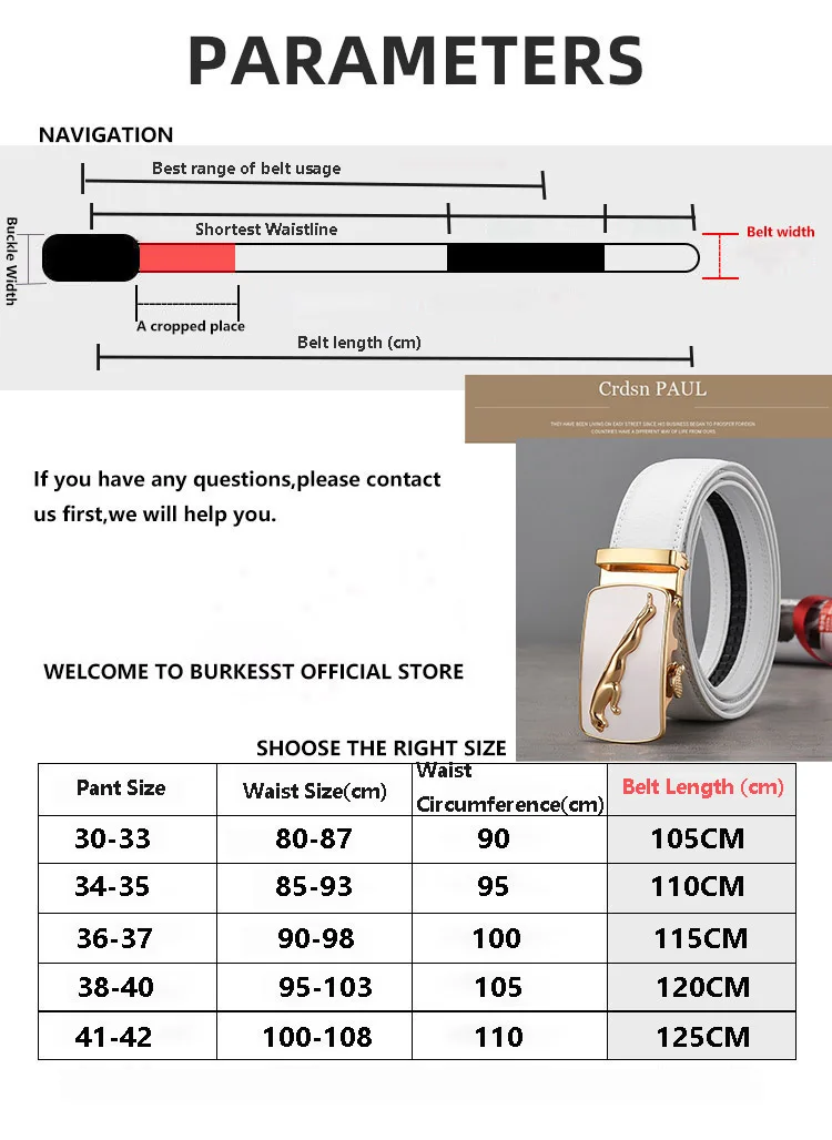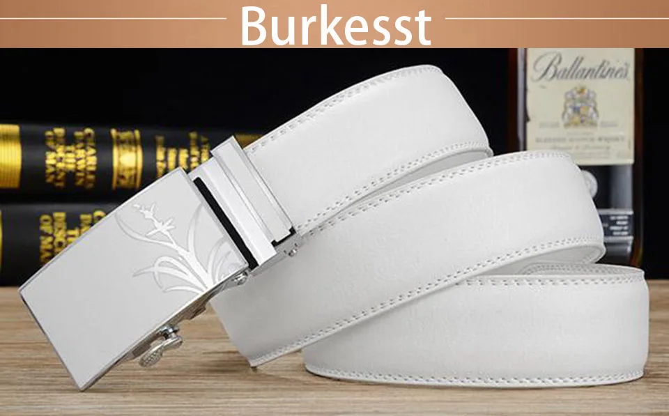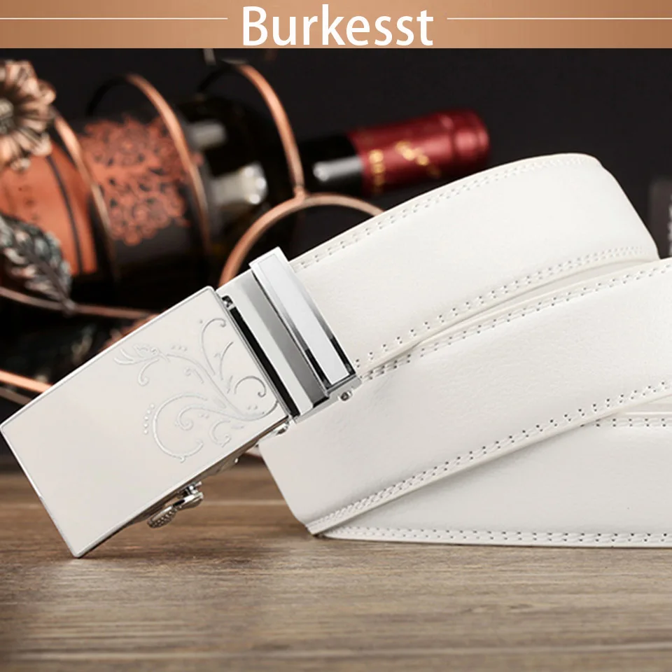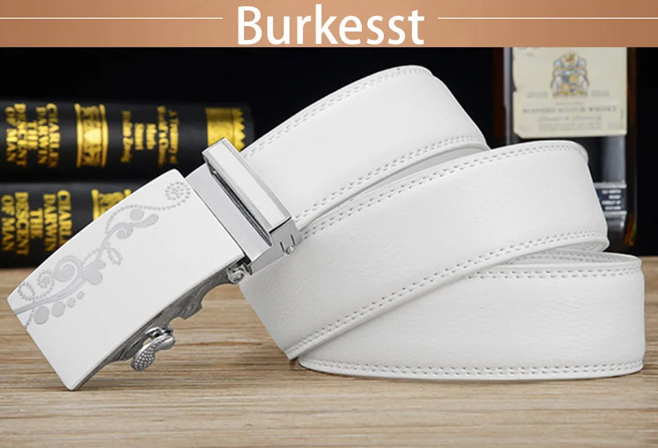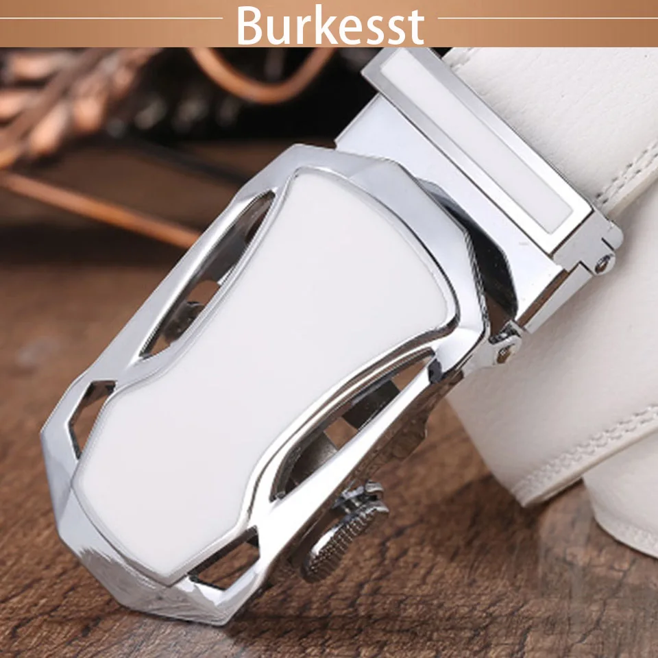 New White Belt Genuine Design Men’s Leather Automatic Buckle Belt Luxury Korean Fashion Trend Quick