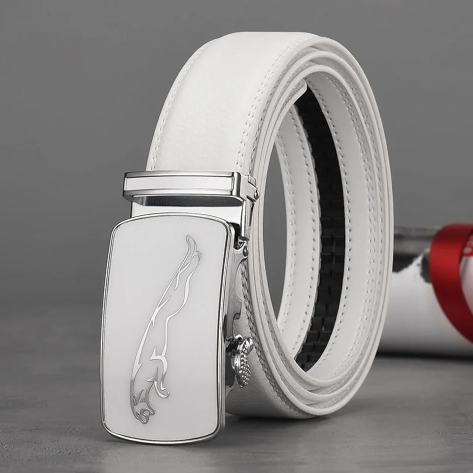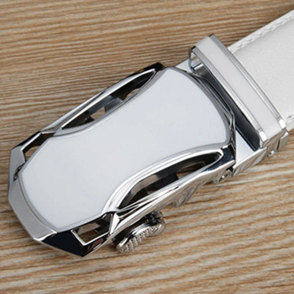 New White Belt Genuine Design Men’s Leather Automatic Buckle Belt Luxury Korean Fashion Trend Quick
