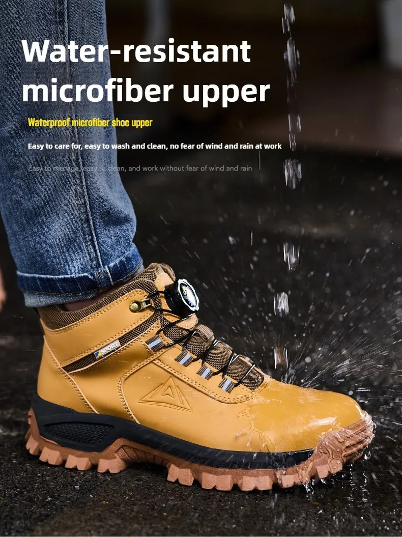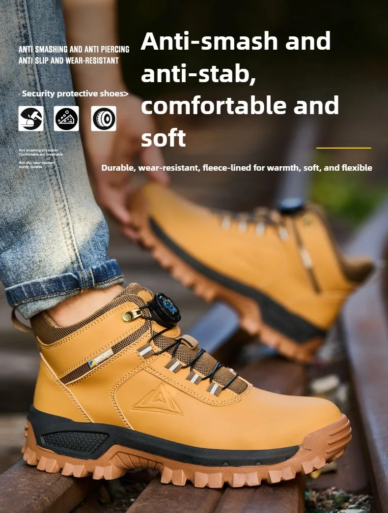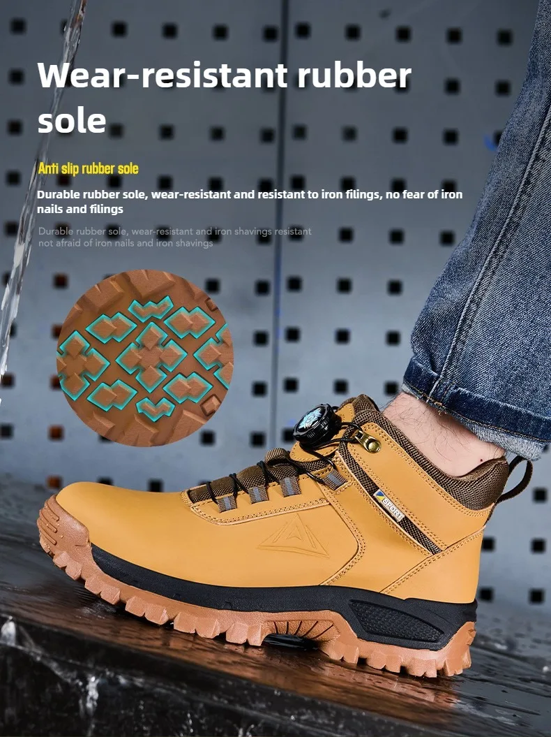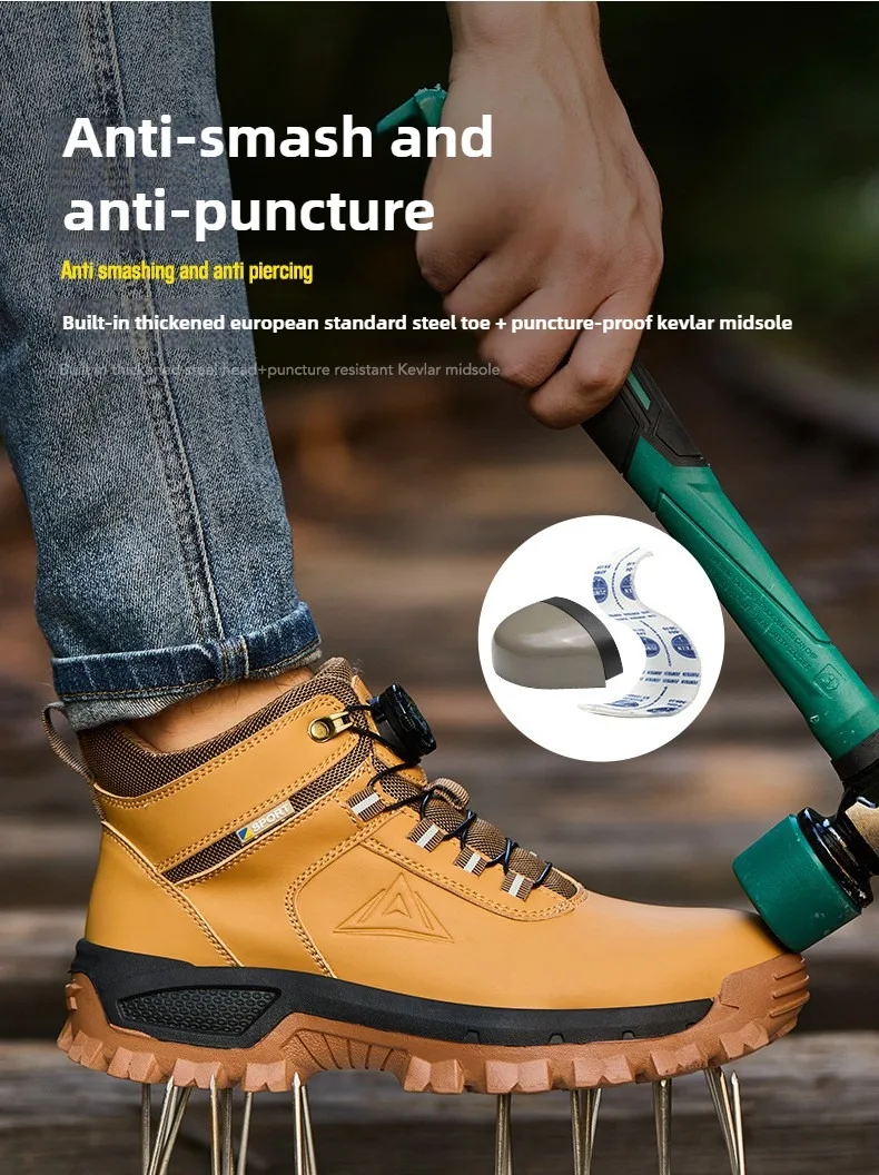 Steel Toe Anti-crash : European standard steel head impact resistance of 200J Kevlar Midsole Anti-puncture:This steel toe shoes are made of Kevlar, which is a protective fiber material.It can protect feet from being punctured by sharp objects like nails, steel bar. Wear-resistant Rubber sole:Clear texture design, stable grip on the ground, and non-slip. Super light safety shoe:It is like the weight of a pair of running shoes. They can help you to work happily all day without exhausting your feet. With super soft insoles and High elastic sole, your feet are safe andcomfortable.