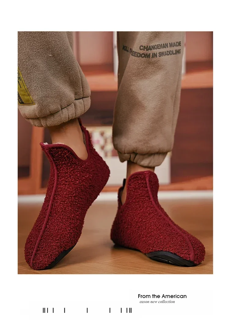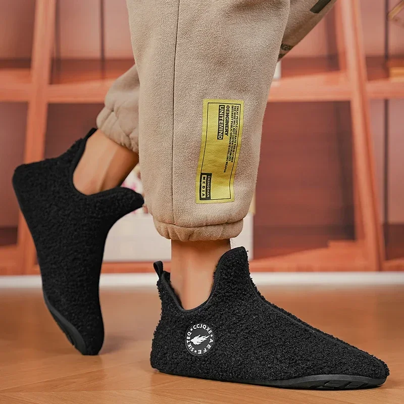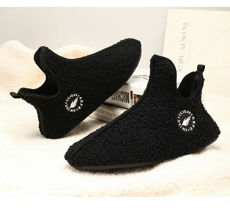 New Winter Cotton Shoes Men High Top Warm Slip on Lightweight Slippers Women Plush Indoor Cotton Loafers Unisex Warm Shoes