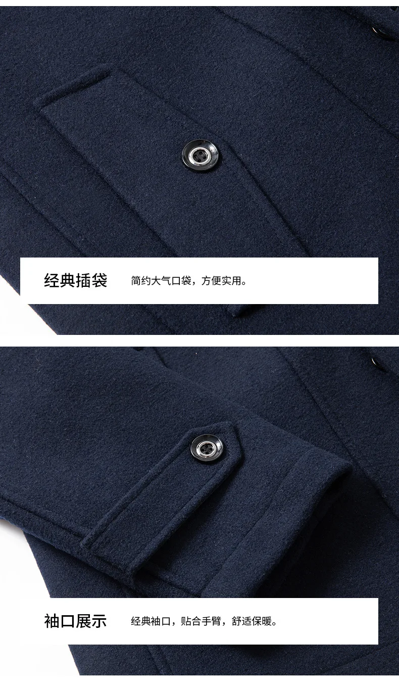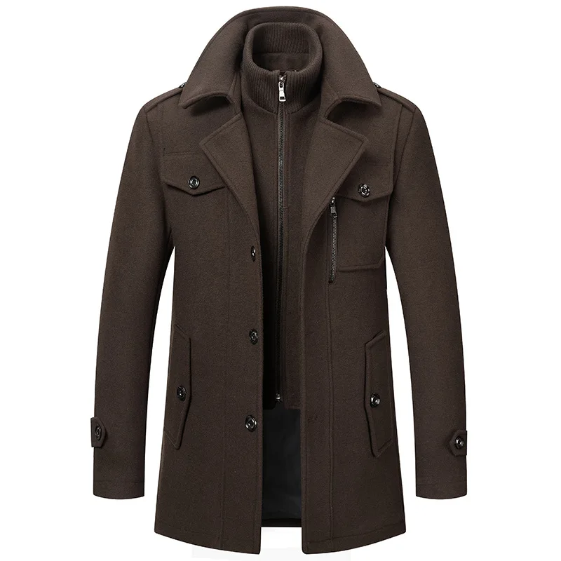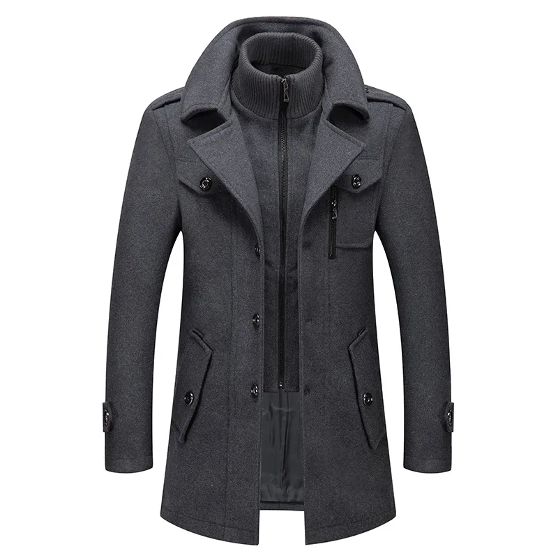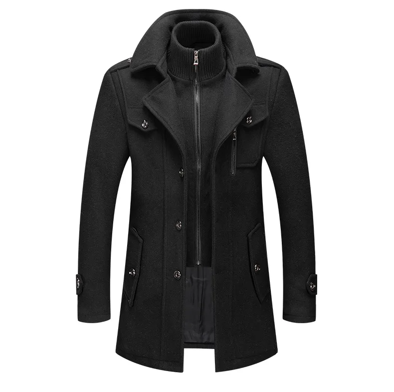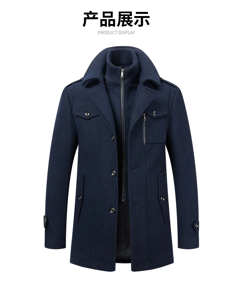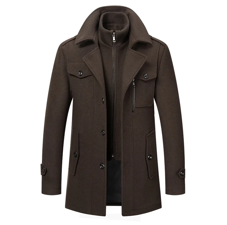 Autumn Winter Male Wool Blend Coats Fashion Long Business Casual Woolen Outwear Men Turn Down Collar Trench Coat Winbreaker Man