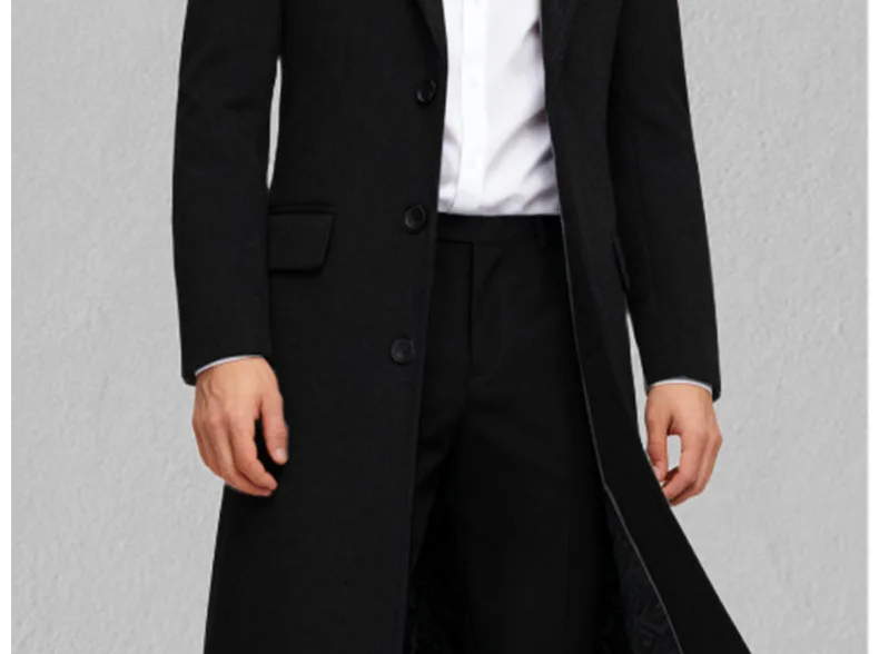 Busin Woolen Coat for Men Autumn Winter Double Collar Warm Faionable Men's Outerwear Tuxedo Sle Long Coat for loween