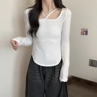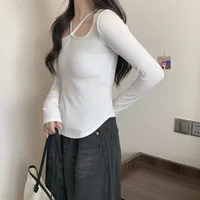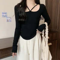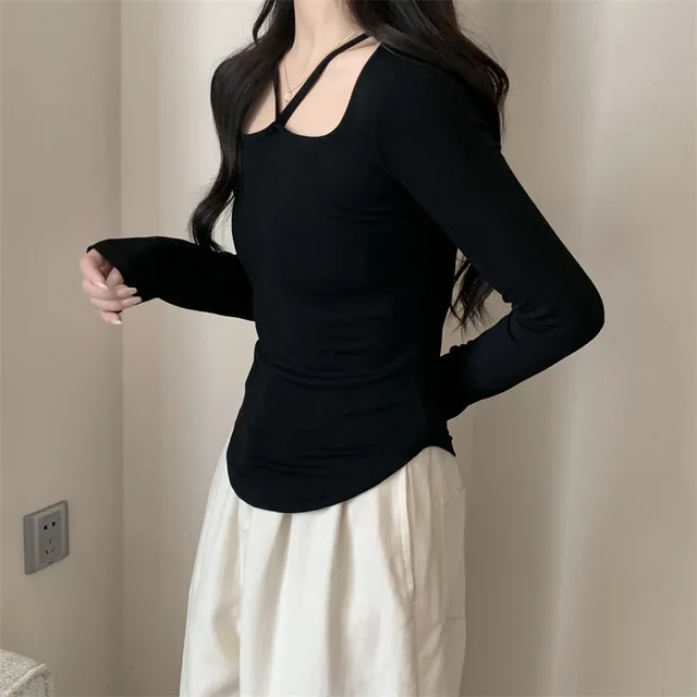 New Winter Sexy Black T-shirt Women Kpop Japanese Y2K Vintage Tee Shirt Woman Autumn Skinny Korean Fashion