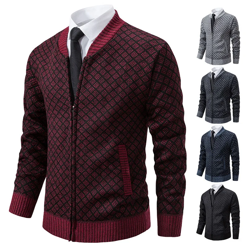 Men's Thiened High Collar Sweater Autumn Winter Warm Cotton Knitwear Sli Lazy High-End Feeling Long Sve Crew Ne