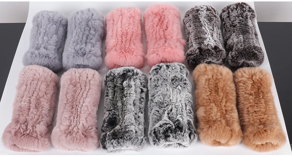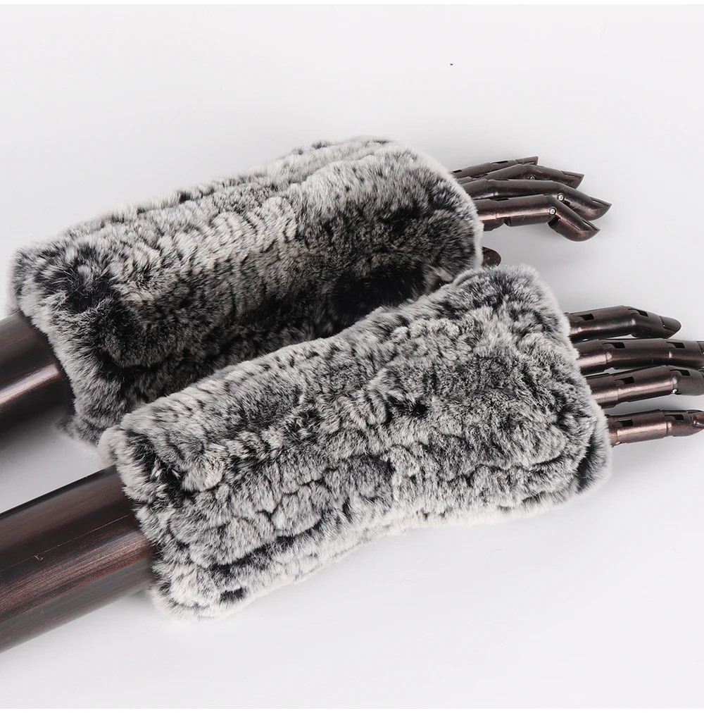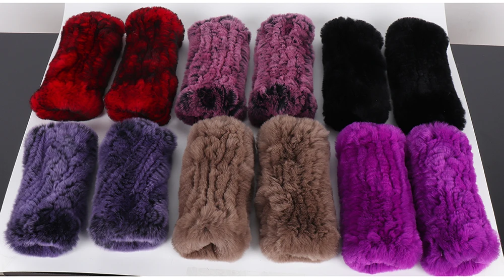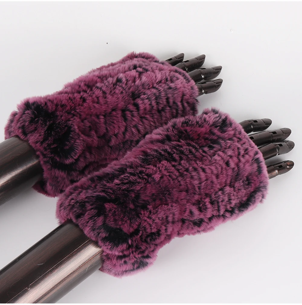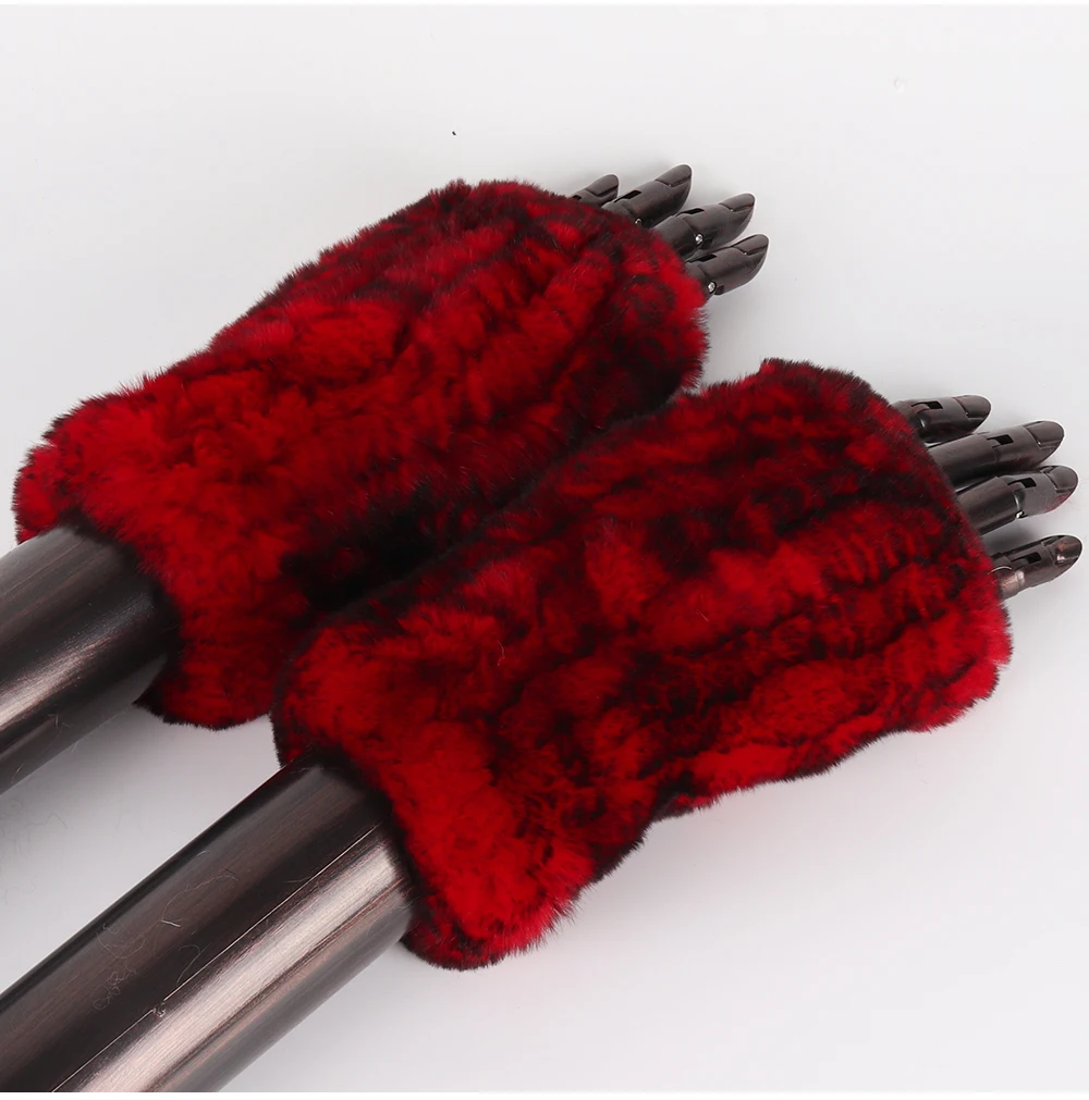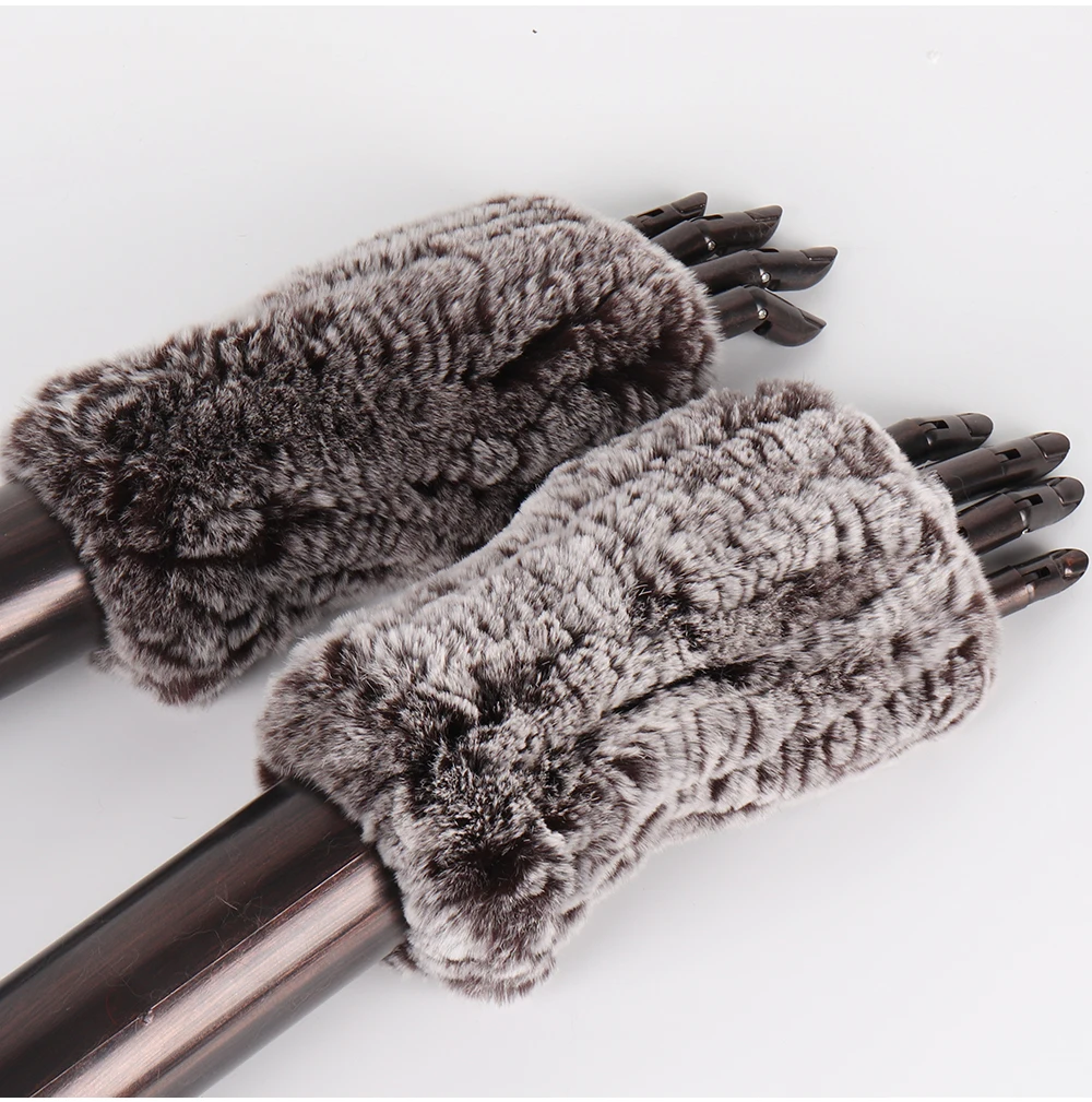 Winter Warm Real Fur Fingerless Gloves Women Knit Fur Mitten Girls 100% Real Genuine Knitted Rex Rabbit Fur Mittens
