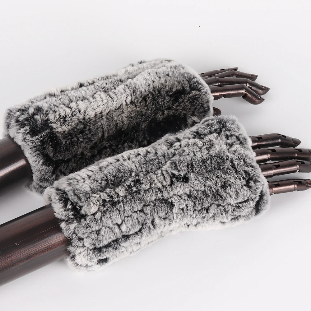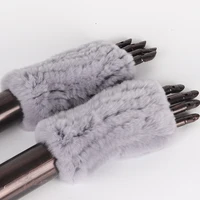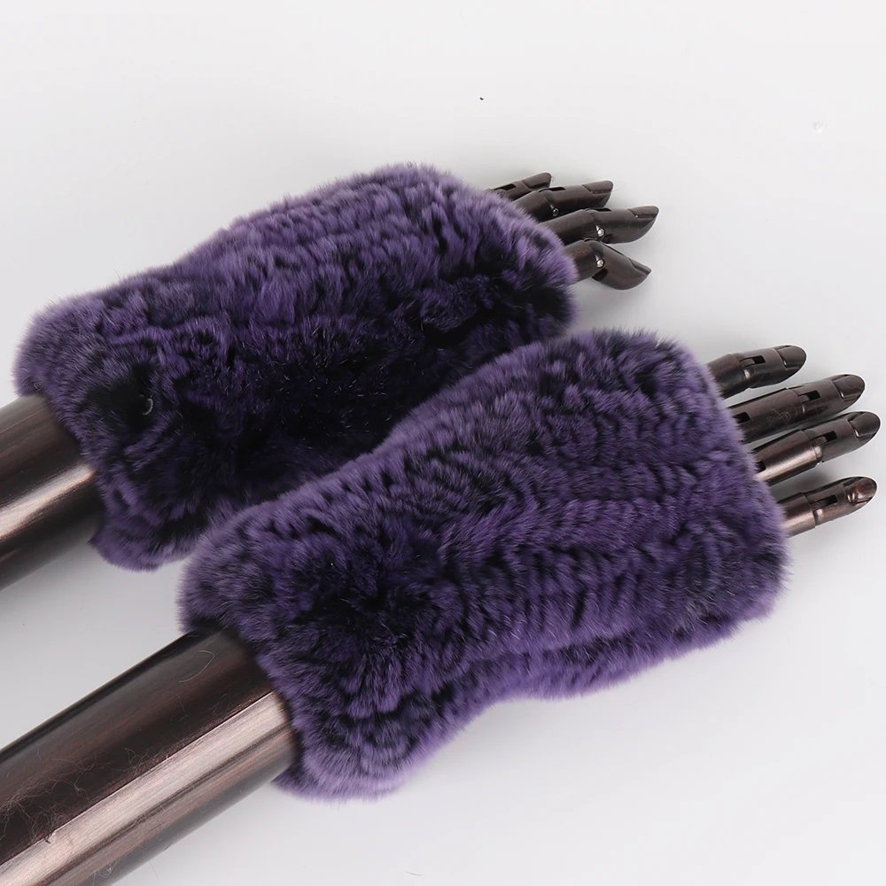 Winter Warm Real Fur Fingerless Gloves Women Knit Fur Mitten Girls 100% Real Genuine Knitted Rex Rabbit Fur Mittens