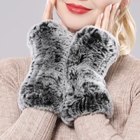 Light gray women leather gloves, sheepskin gloves female,best-selling women's winter mittens,Genuine Leather gloves women-2081