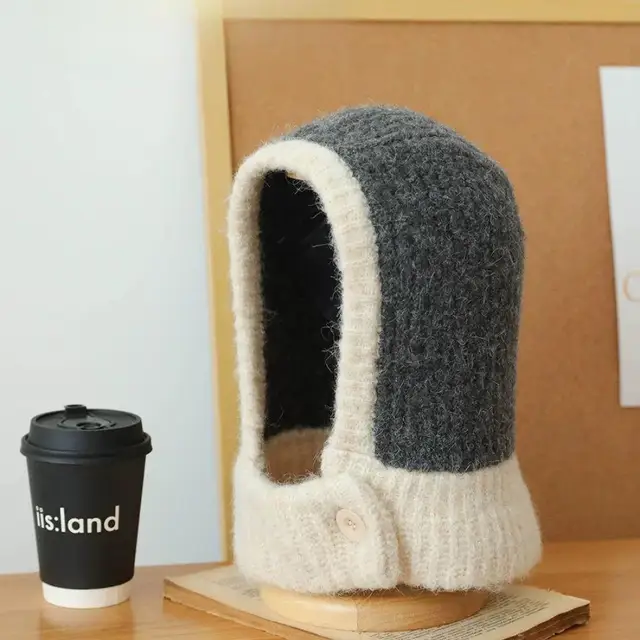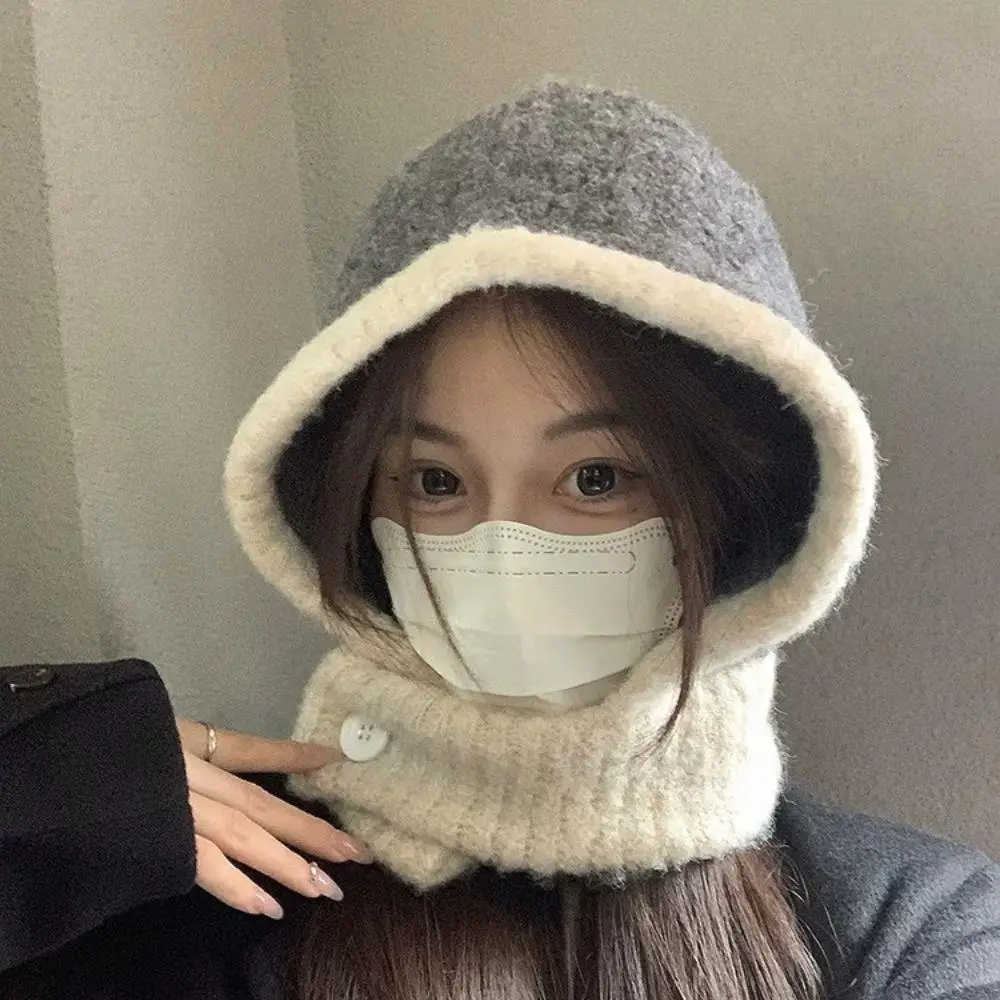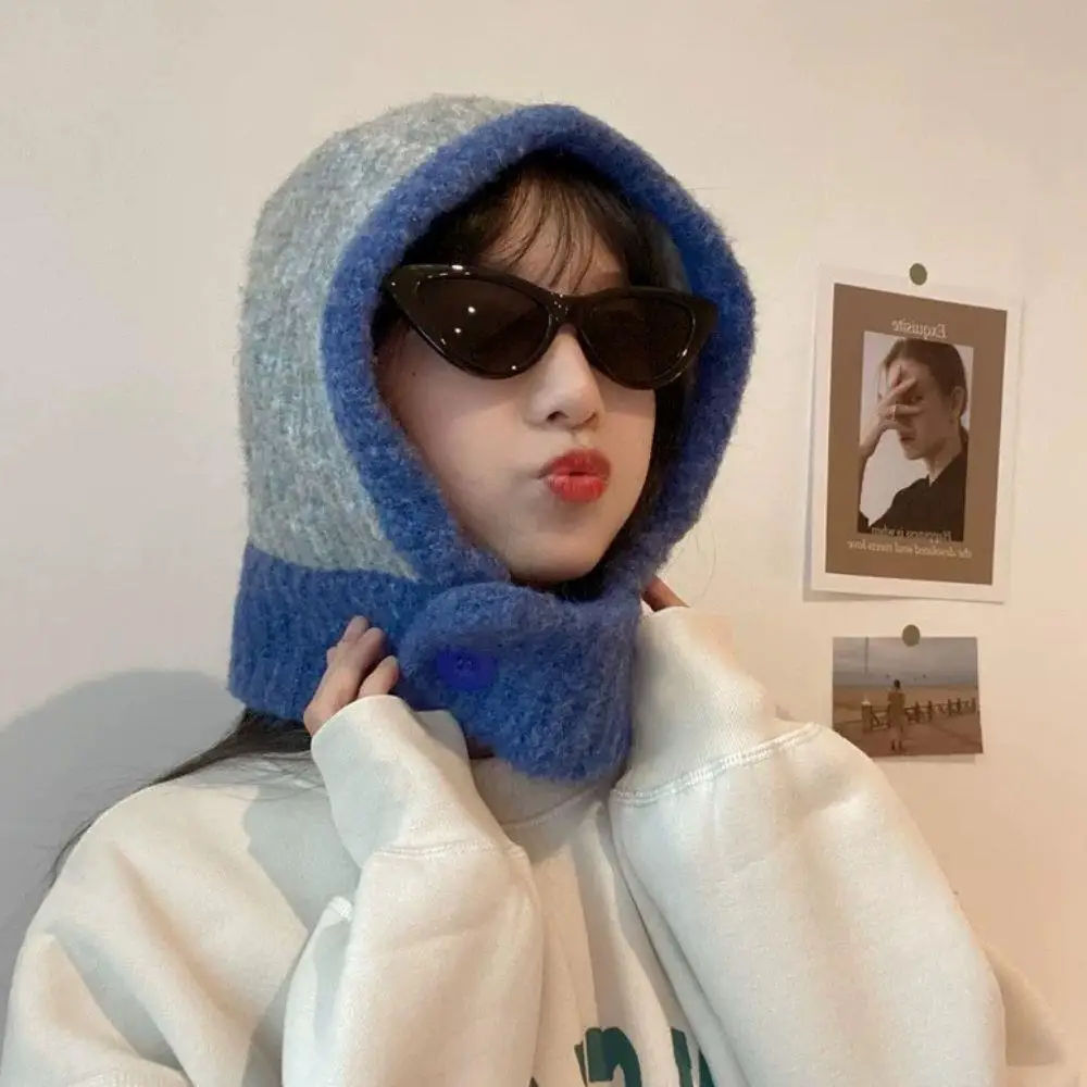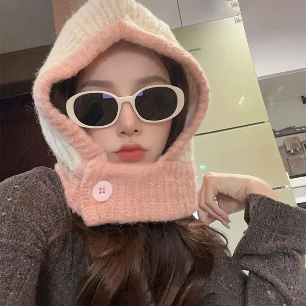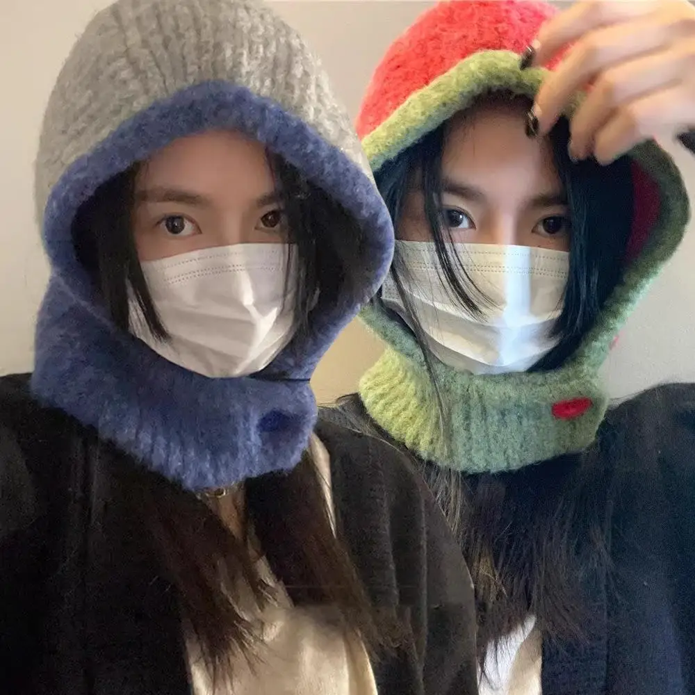 New Women Knitted Hat Balaclava Women‘s Winter Hood Warm Anti-Pilling Neck Collar Beanies CapLadies
