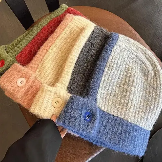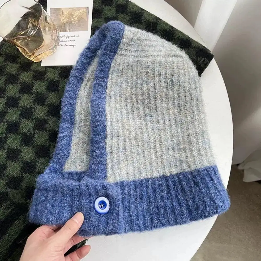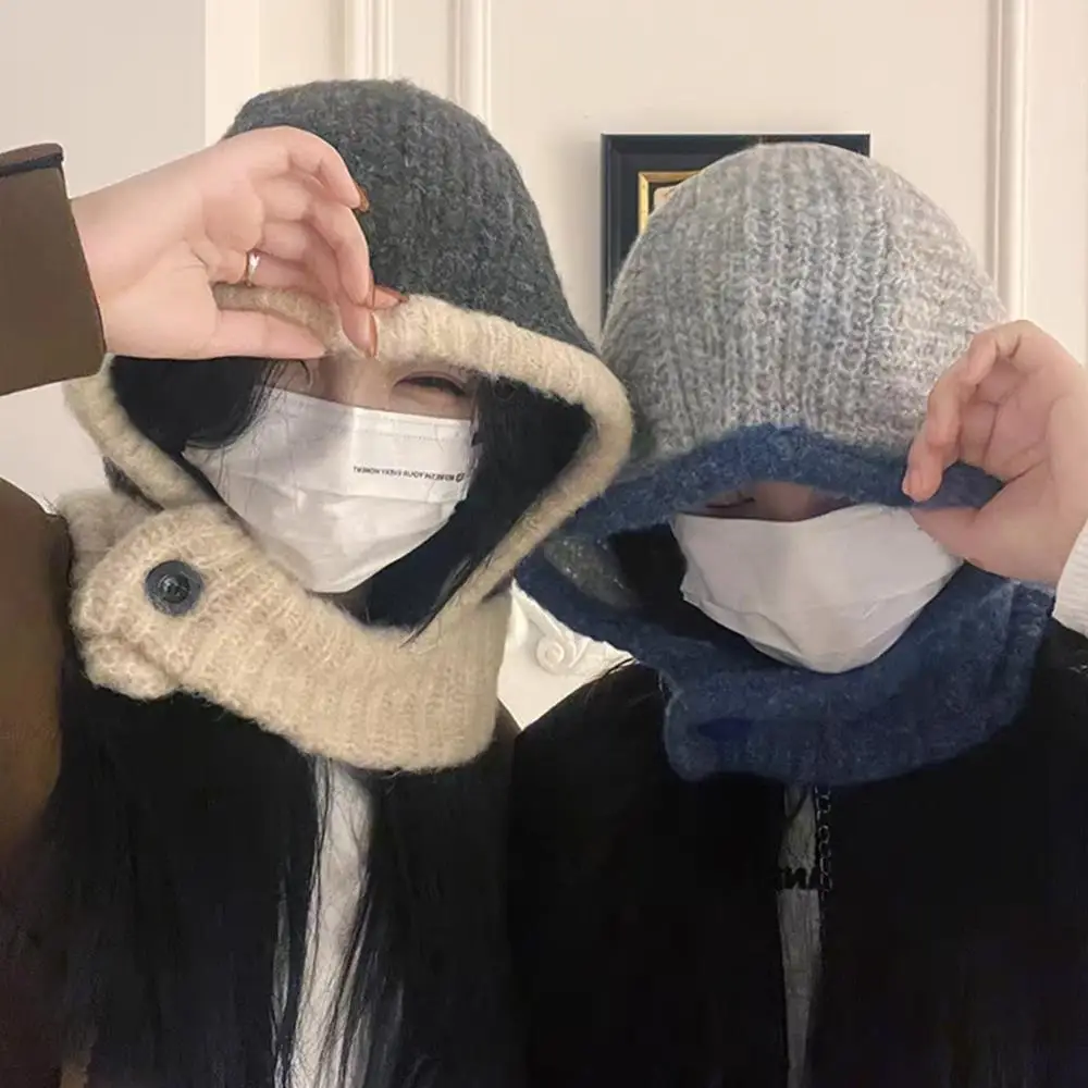New Women Knitted Hat Balaclava Women‘s Winter Hood Warm Anti-Pilling Neck Collar Beanies CapLadies Windproof Earflaps Scarf Hat