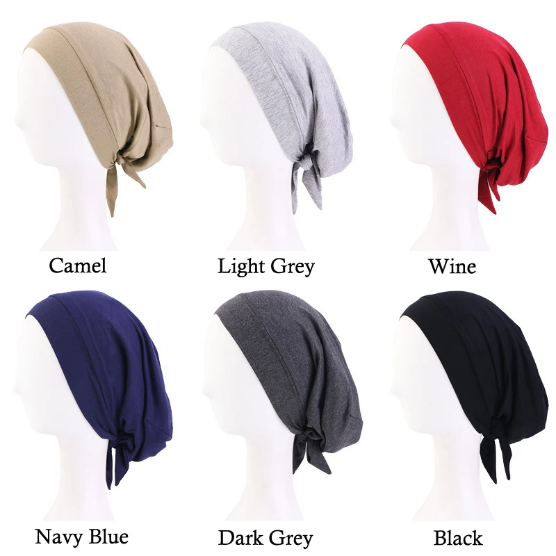 New Women Muslim Satin Hijab Cap Pre-Tied Jersey Hijab Cap Elastic Cotton Solid Color Wrap Head Scarf Stretch Turban Underscarf