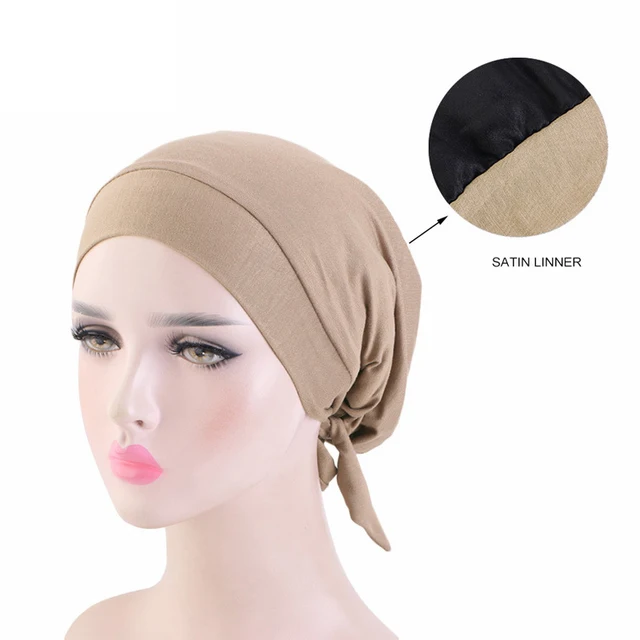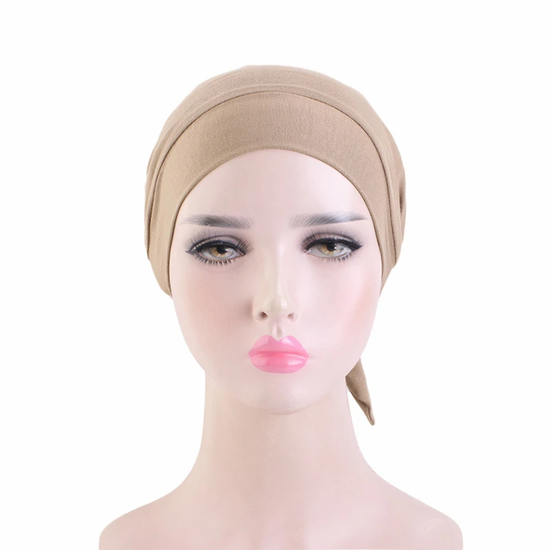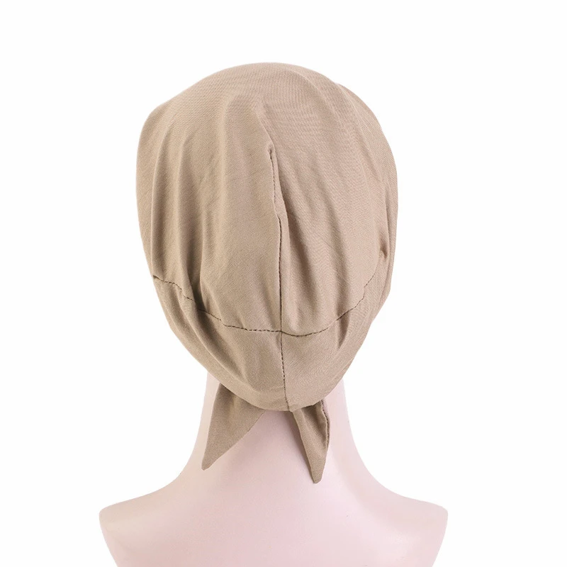 New Women Muslim Satin Hijab Cap Pre-Tied Jersey Hijab Cap Elastic Cotton Solid Color Wrap Head Scarf