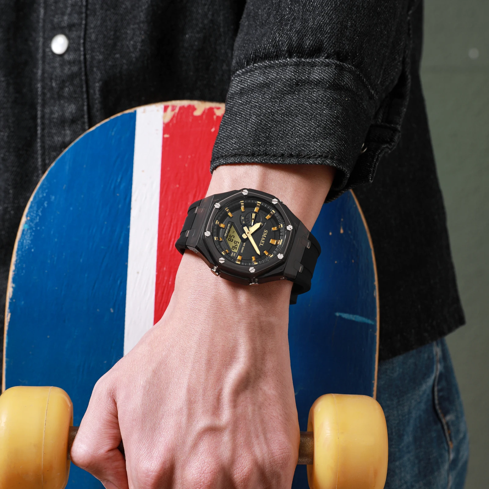 New Women Watch Pink 50M Waterproof Wristwatches Lady Watches Dual Time 8088 Digital Watches LED Light Clock for Girls Gifts