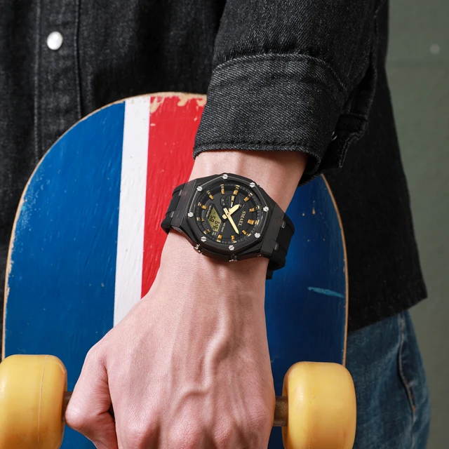 New Women Watch Pink 50M Waterproof Wristwatches Lady Watches Dual Time 8088 Digital Watches LED Light