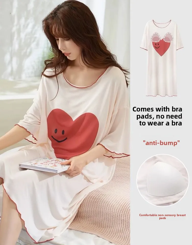 New Women's Cotton Spwear with Chest Pad Summer ort Sve Dr Home Clothes Sweet Sle Print Youth Suitable
