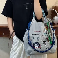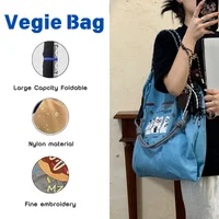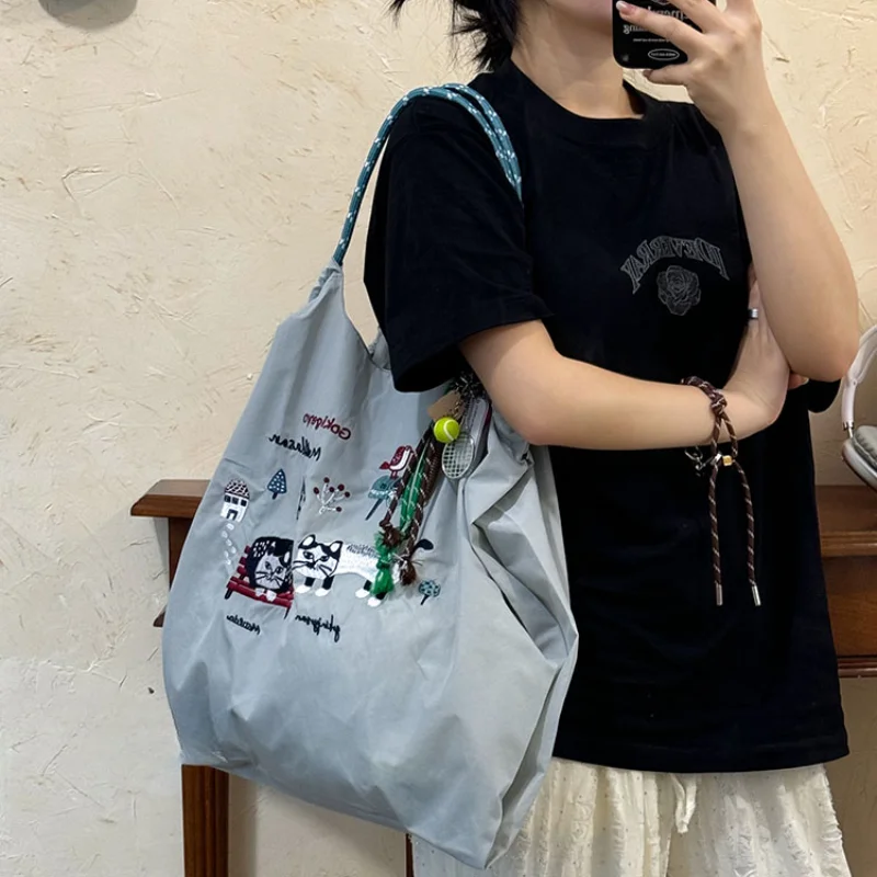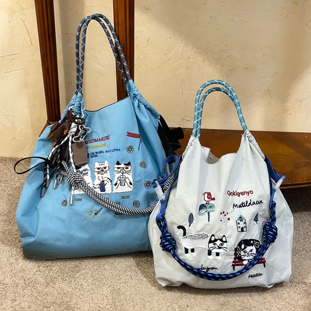 New women’s crossbody bag Nylon shopping bag Cat embroidery lightweight Tote bag Folding storage