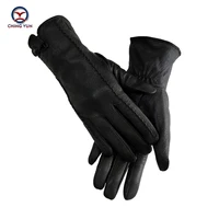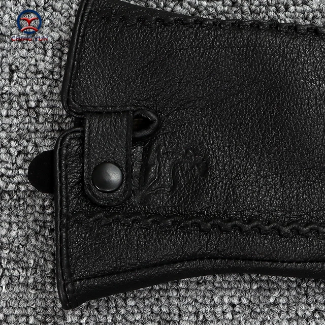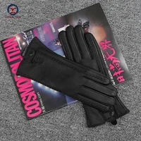 -30%New Women’s Gloves Genuine Leather Winter Warm Fleece Woman Soft Female Rabbit Fur Lining Riveted Clasp High-quality Mittens