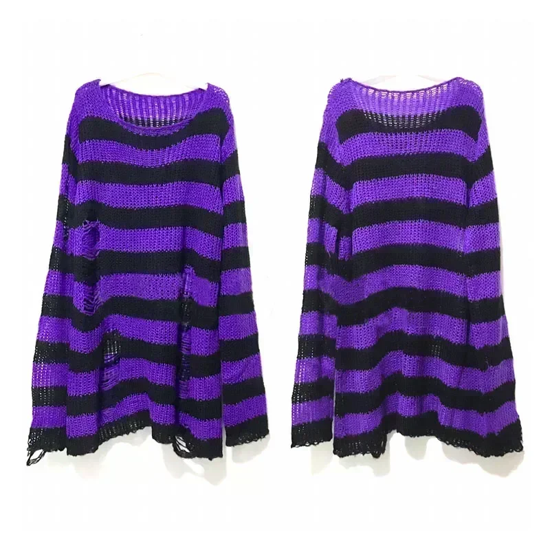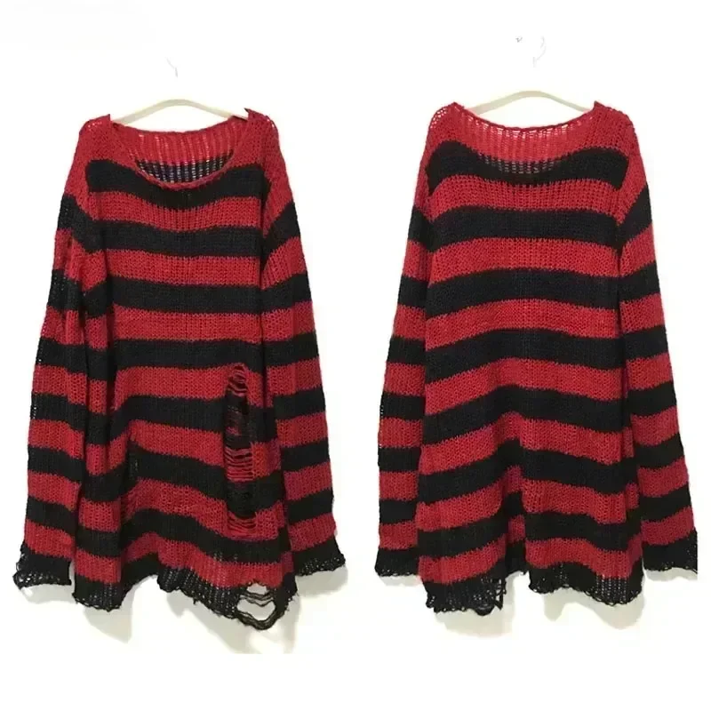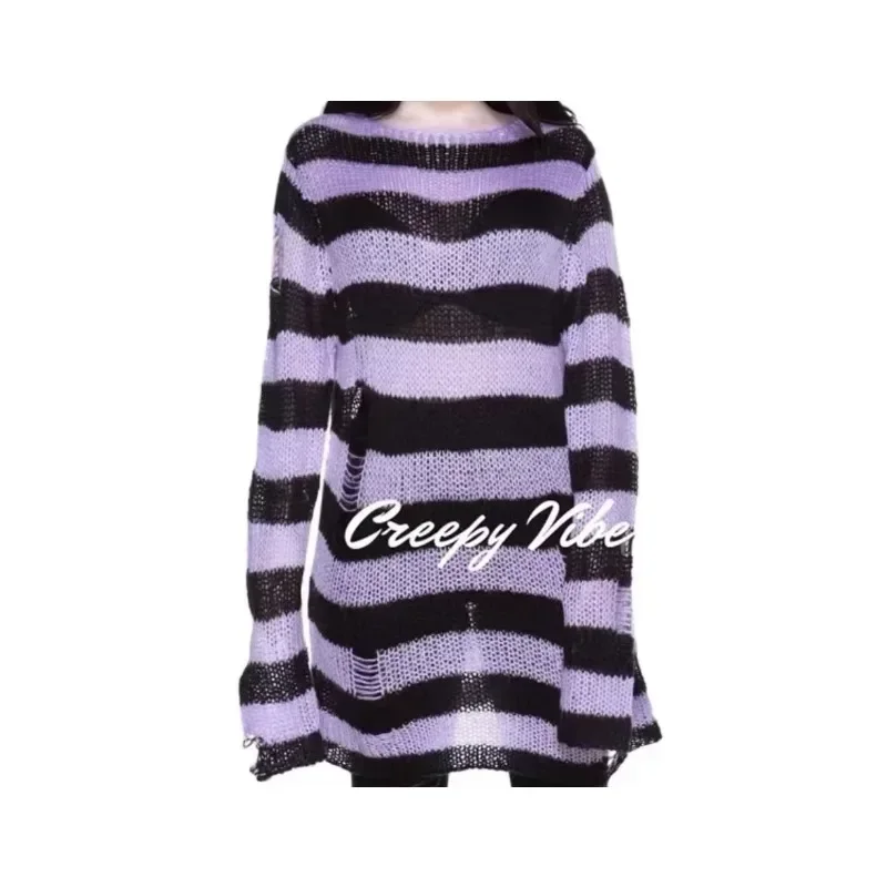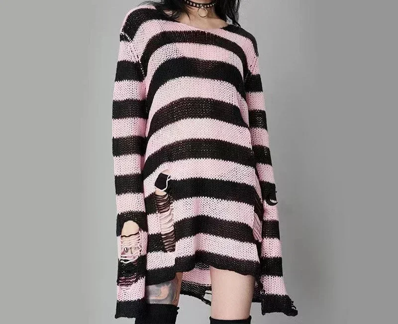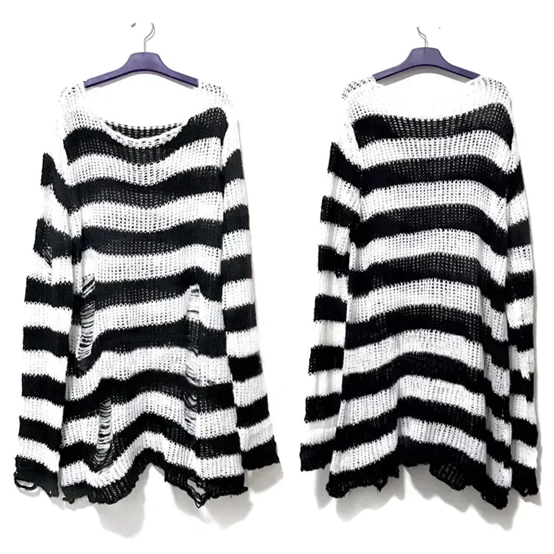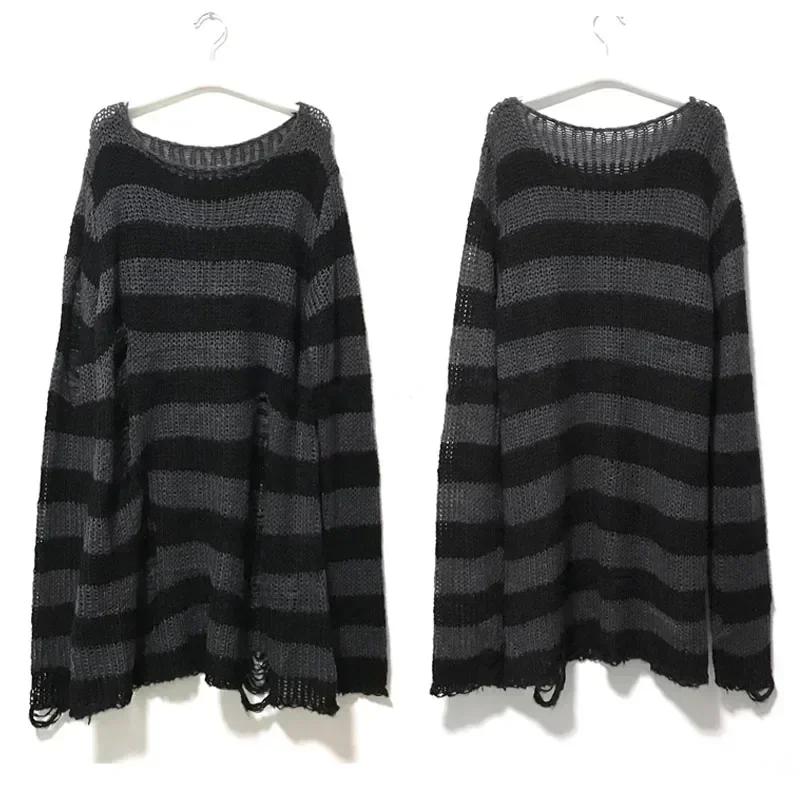 New Women’s Punk Gothic Oversized Pullover Sweater Striped Hollow out Cool Harajuku Aesthetics