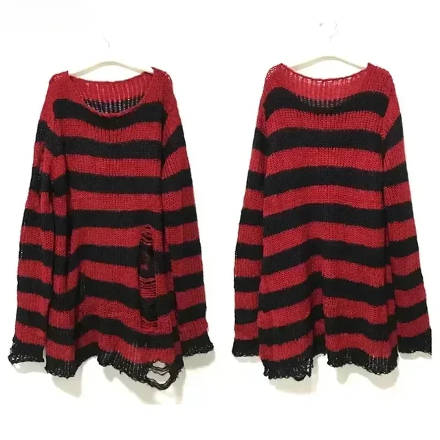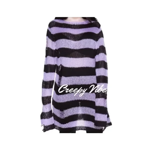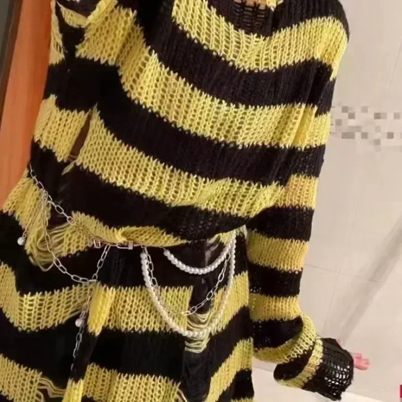 New Women's Punk Gothic Oversized Pullover Sweater Striped Hollow out Cool Harajuku Aesthetics Spring Autumn