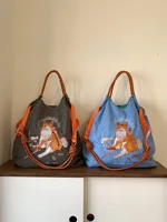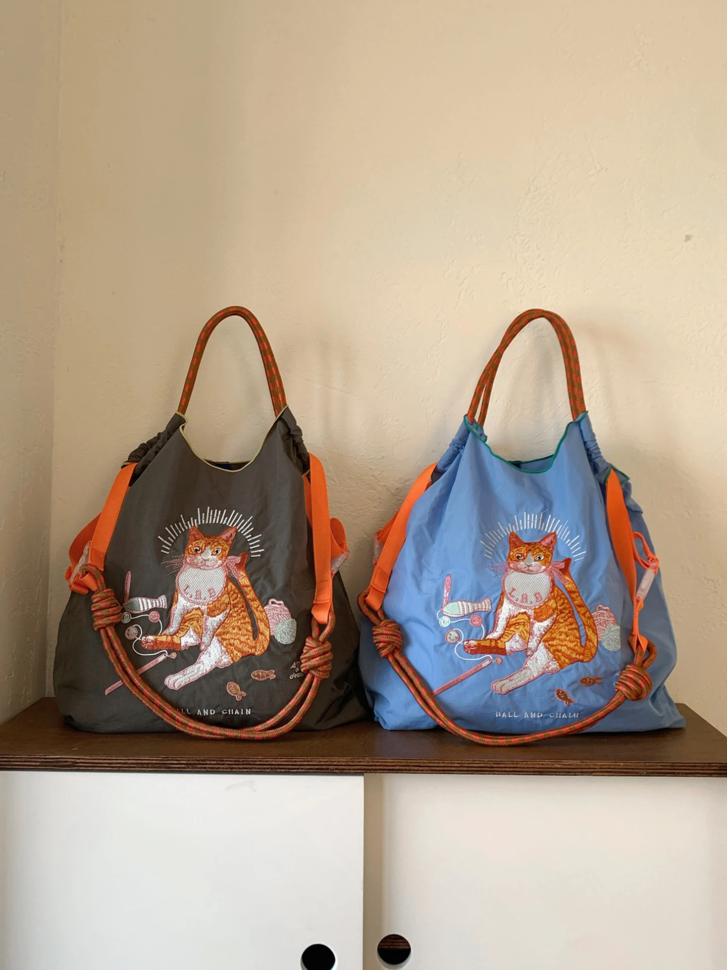 New Women's Tote Bag String Ball Cat Embroidered Shopping Bag Nylon Commuter Shoulder Crossbody Bag for Women