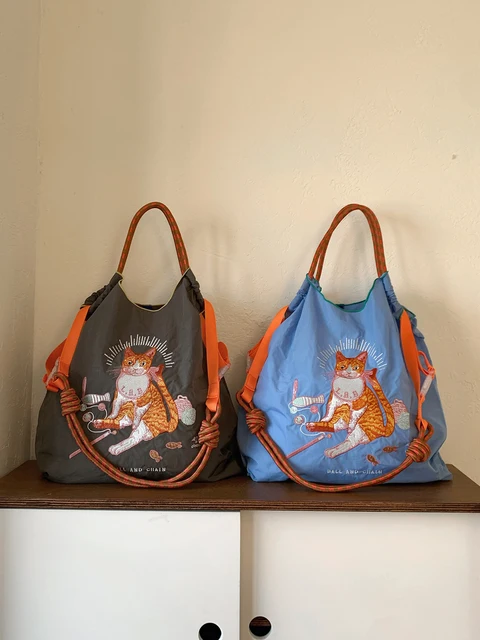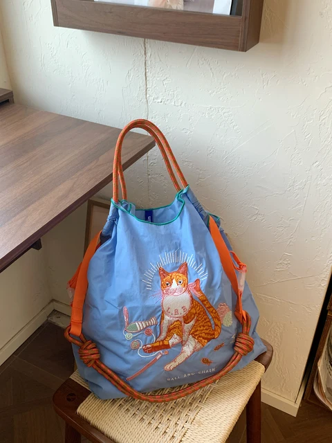 New Women’s Tote Bag String Ball Cat Embroidered Shopping Bag Nylon Commuter Shoulder Crossbody