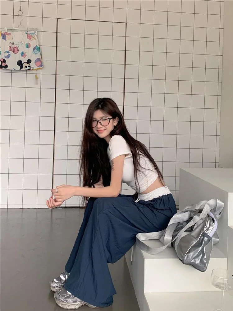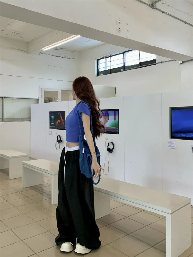 This new color-blocked loose-leg casual pants offer a versatile style that can be paired with any top for a chic look.