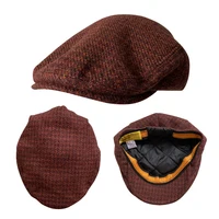 BOTVELA Wool Tweed Newsboy Cap Herringbone Men British Gatsby Retro Hat Driver Flat Cap for Male Vintage Herringbone Beret