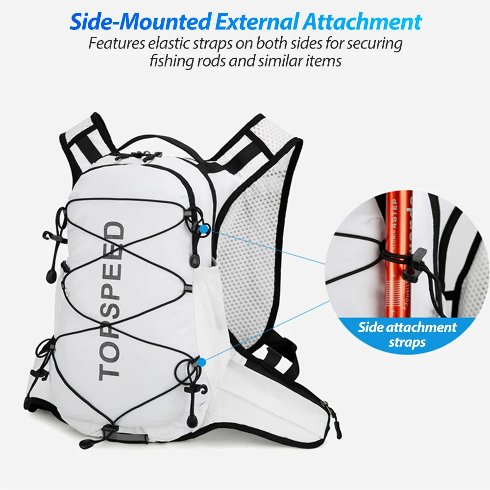 5.Customizable Fit: Tailor the lightweight cycling backpack to your body with adjustable chest and back straps for a close, secure fit. The elastic binding straps offer additional storage for essentials like an umbrella, ensuring you’re prepared for any weather while keeping your hands free.