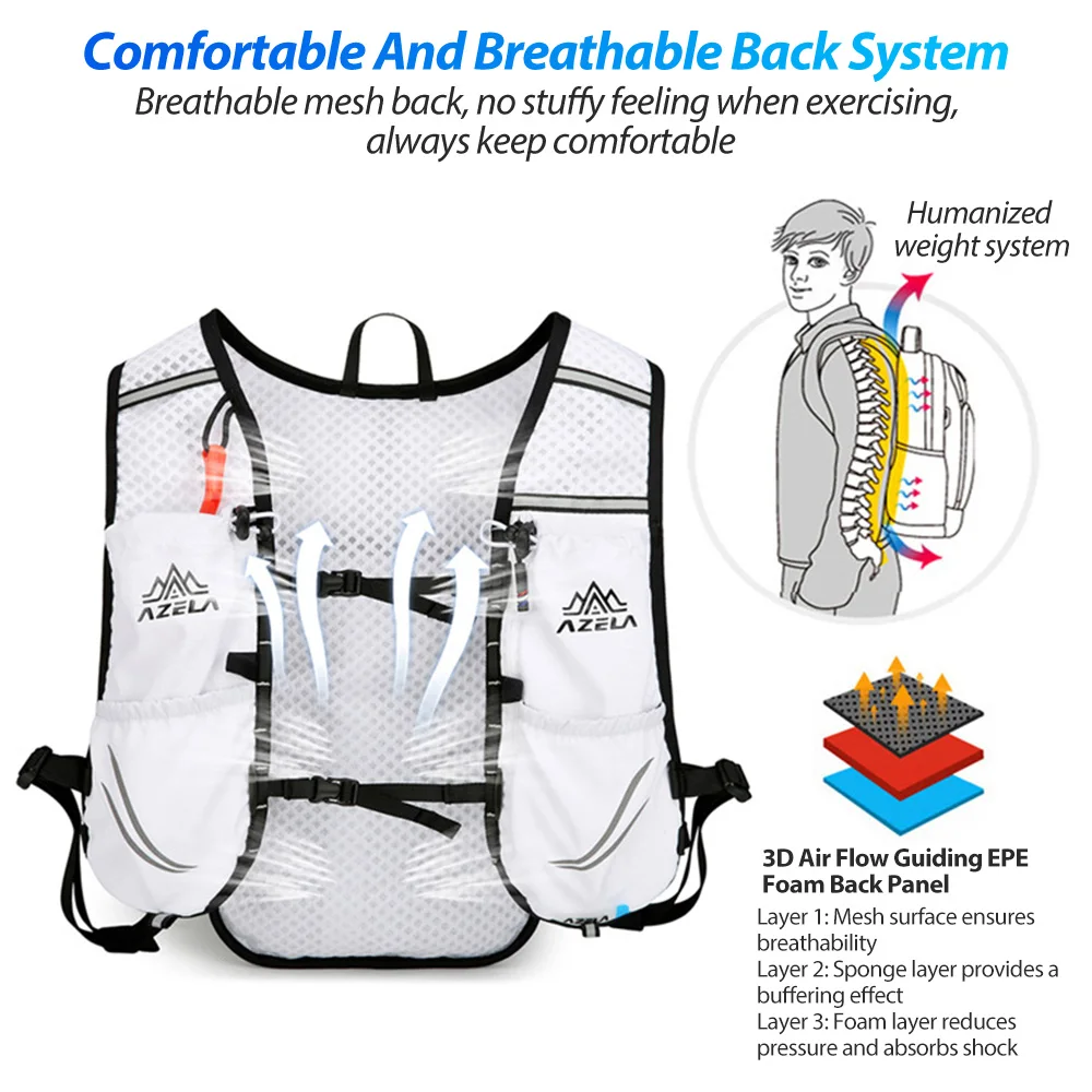 1.Lightweight Comfort: Experience the ultimate in lightweight running gear with our running hydrating vest backpack. Designed for the avid runner, its light, thin profile offers a snug, comfortable fit, ensuring minimal bulk and maximum comfort during long distances.