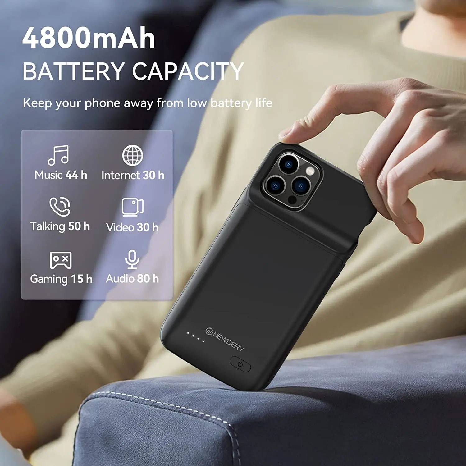 Add 100% Battery Power: The portable battery case for iPhone 12 pro contains a durable 4800mAh Li-polymer battery that can add more than 100% battery life to your phone. Never worry about your phone running out of battery power in your daily life. Idea for travel and business trip.
