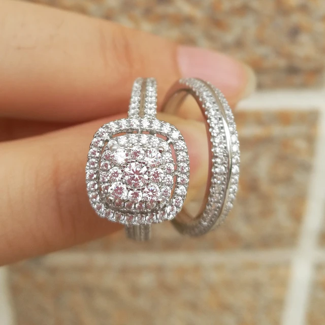 This 2 piece wedding sets include sterling silver engagement ring and cz wedding band.Minimal bridal set made for everyday wear!